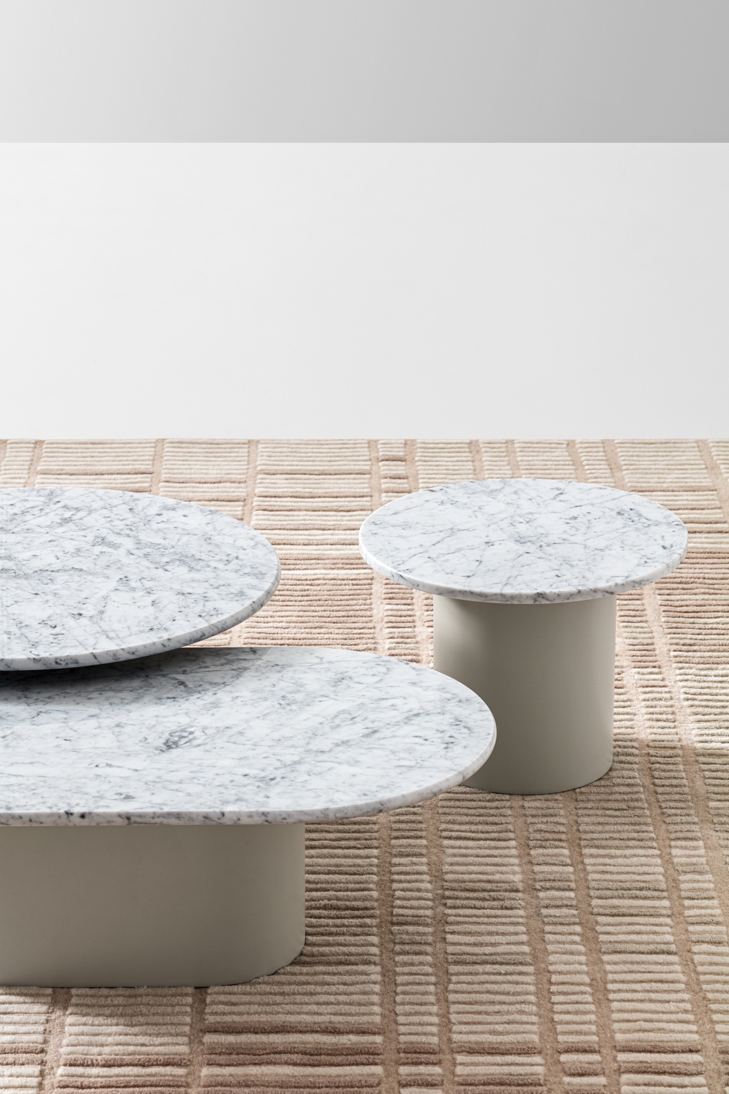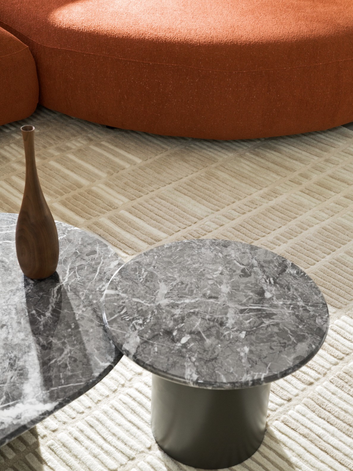 La famiglia Arcade si allarga e genera con continuità formale dei tavolini, che interpretano l’idea di pilastri e passaggi con grande senso estetico ed equilibrio. I tavolini – di altezze e profili differenti – presentano varie finiture tra cui “Oxide Mirror”, una inedita superficie a specchio con effetto anticato.
