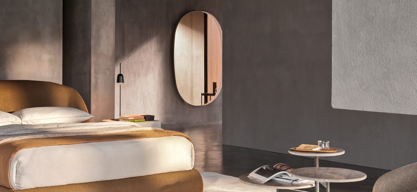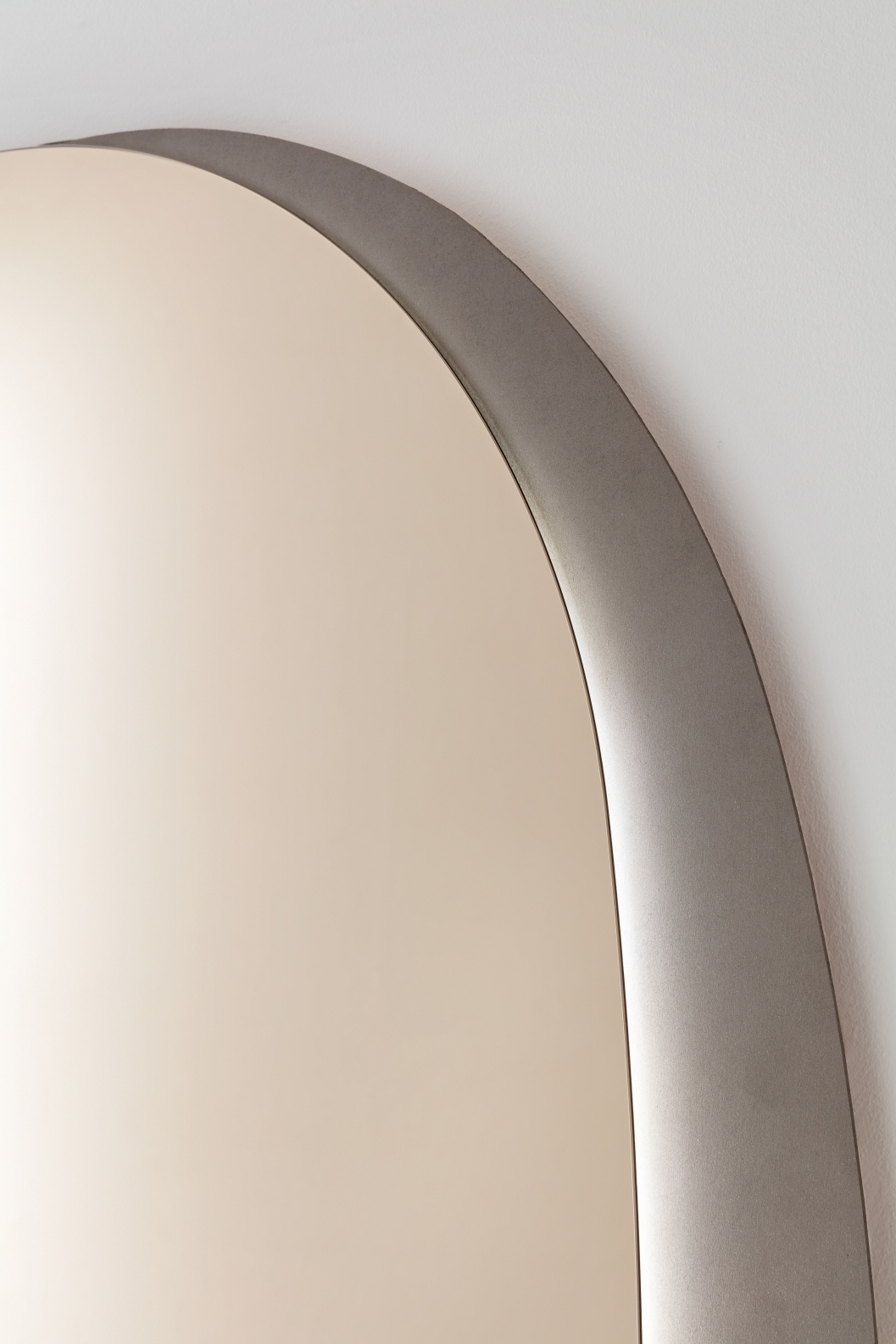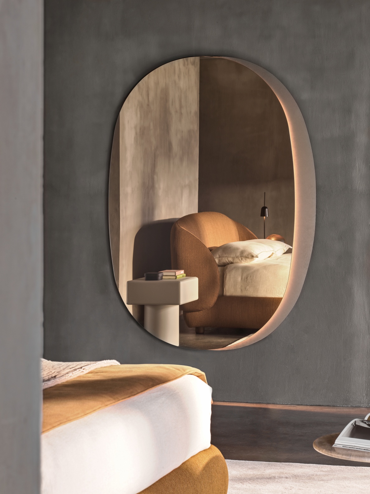 Una sovrapposizione di due ampie superfici ripropone, nello spazio domestico, l’idea del fenomeno dell’eclissi. Tra giochi di luci e ombre, lo specchio Helios integra un funzionale e decorativo filo illuminante e si presta per arredare con originalità sia la camera da letto sia la zona living.