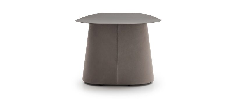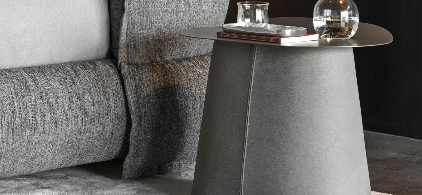 Un binomio di arredi per la zona notte. Un letto la cui generosa testiera rimanda all’idea – e alla forma – di un soffice guanciale; e un comodino che, per contrasto, risalta nella sua forma rigorosa e disciplinata, dettata da un piano di metallo e da una solida base rivestita di pelle oppure tessuto.