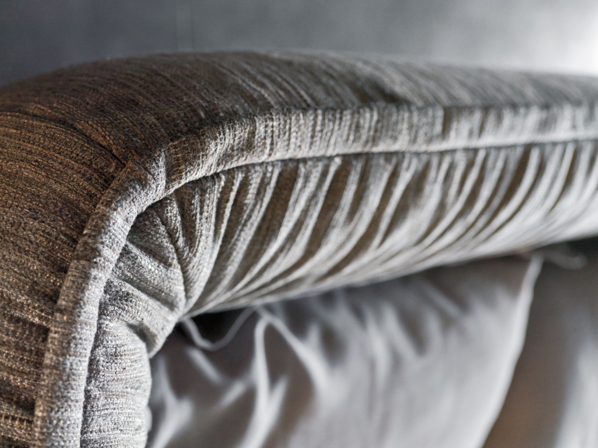 Un binomio di arredi per la zona notte. Un letto la cui generosa testiera rimanda all’idea – e alla forma – di un soffice guanciale; e un comodino che, per contrasto, risalta nella sua forma rigorosa e disciplinata, dettata da un piano di metallo e da una solida base rivestita di pelle oppure tessuto.