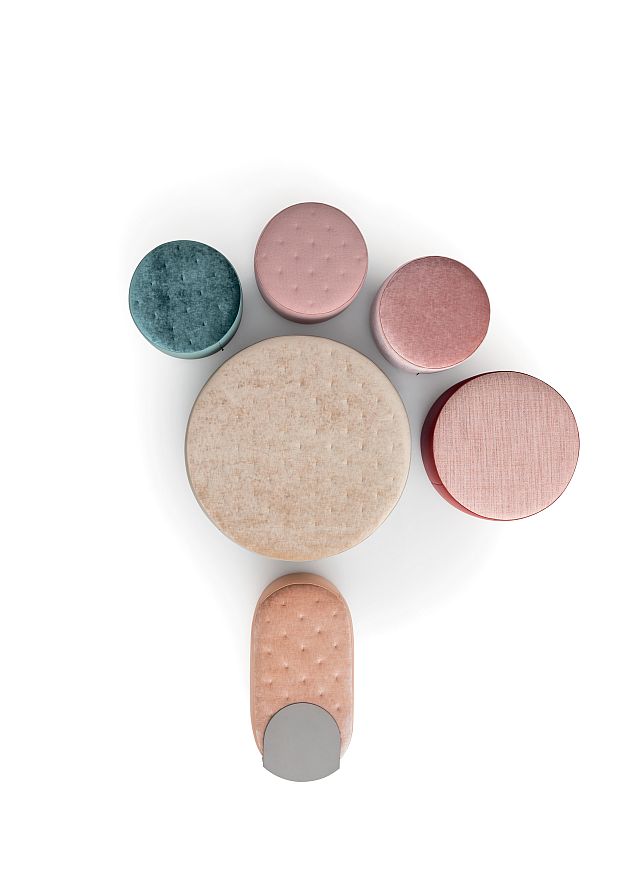 Ancora libertà, di creare, disporre, invitare, ripensare e riorganizzare. Clip Set si ispira alle insostituibili “graffette” che infatti possono essere riutilizzate all’infinito. Una collezione di sedute free standing coerenti nel tema, di dimensioni diverse e molto versatili: il pouff, per esempio, si trasforma in un tavolino da caffè. Ma