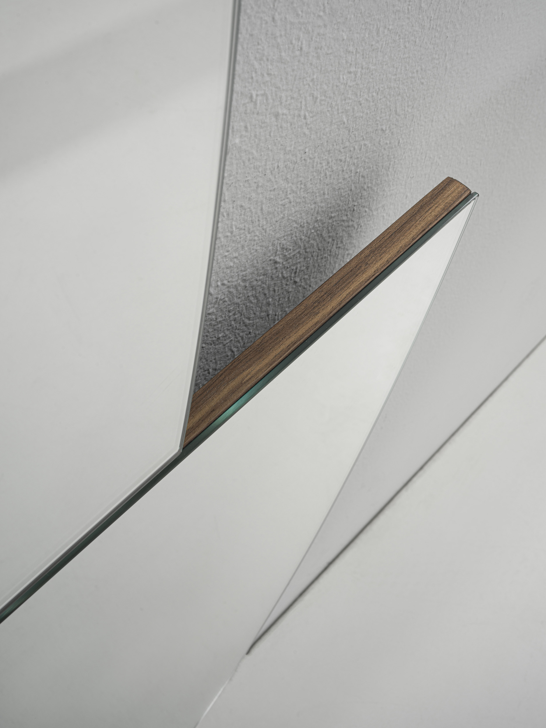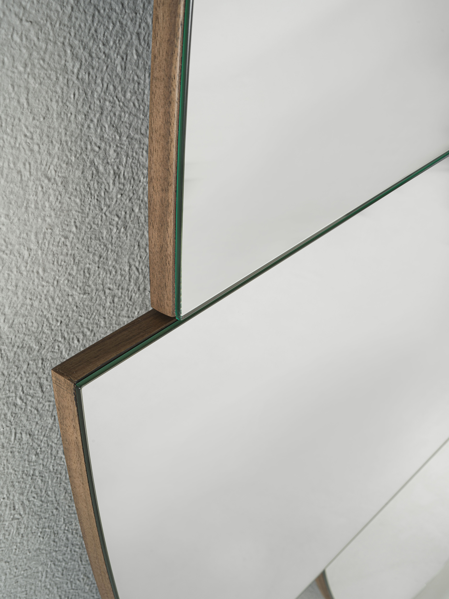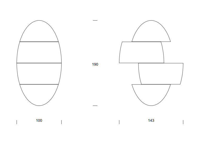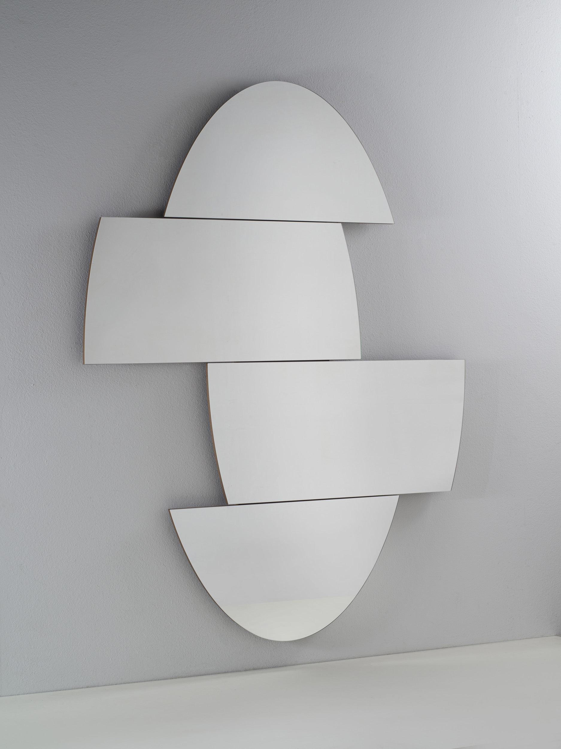 Oval-shaped mirror, with the particularity of being able to move some parts of the mirror, to give life to new mirroring shapes