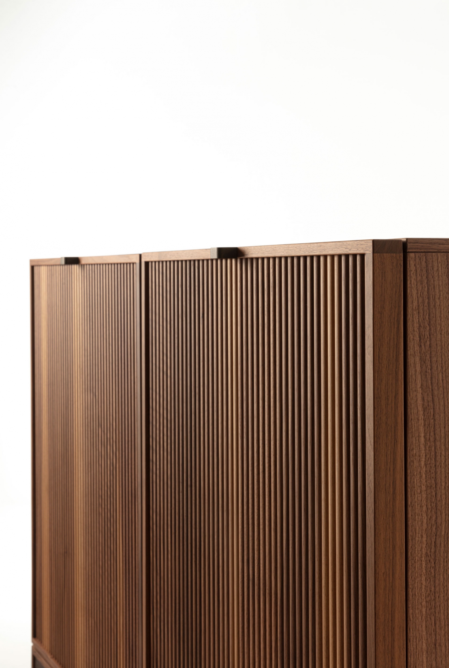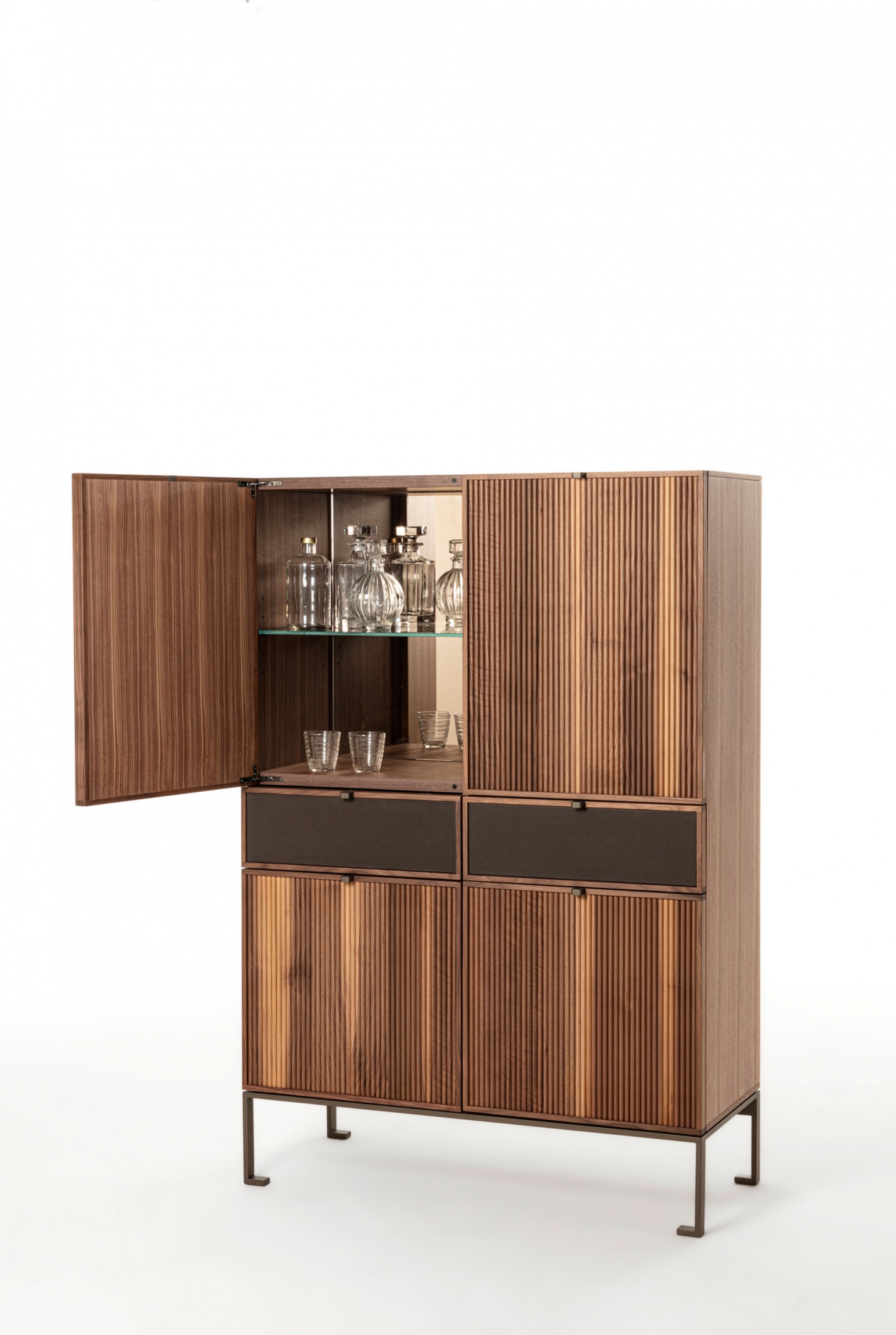 The interior breakdown is made with wooden or alternatively glass shelves.