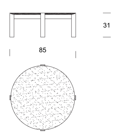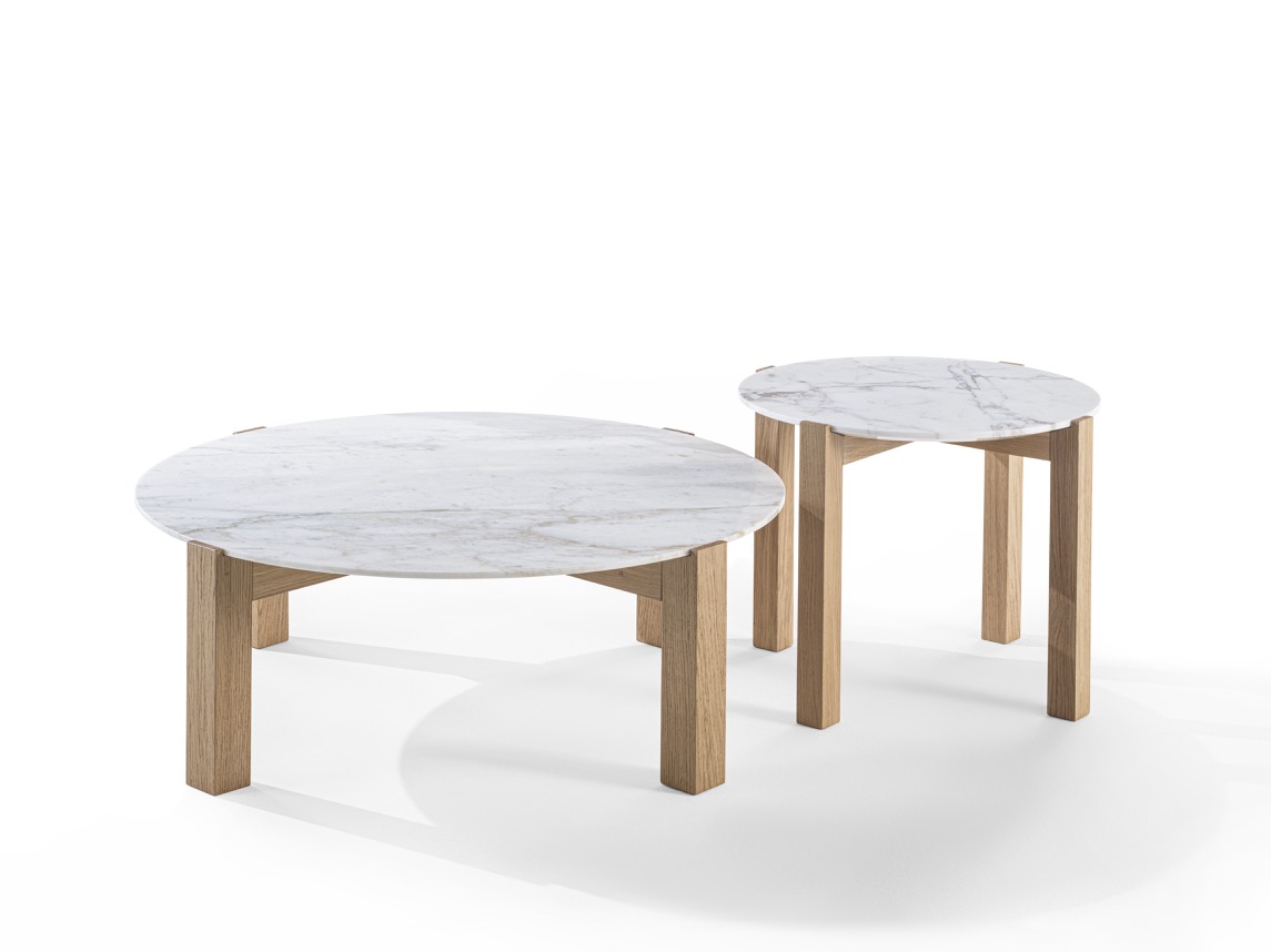 Coffee table with marble top and structure made up of four solid wood legs.