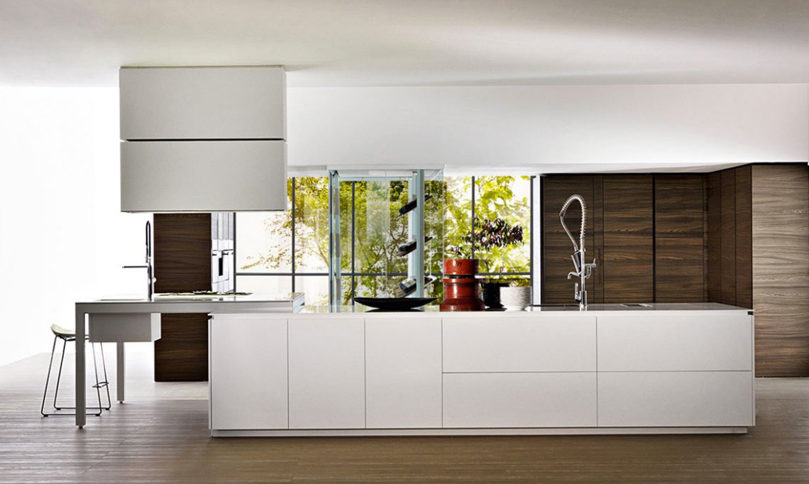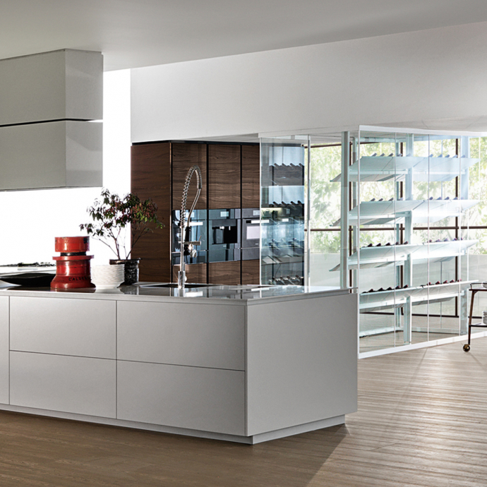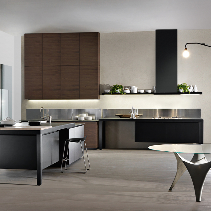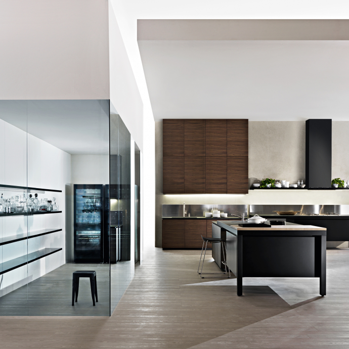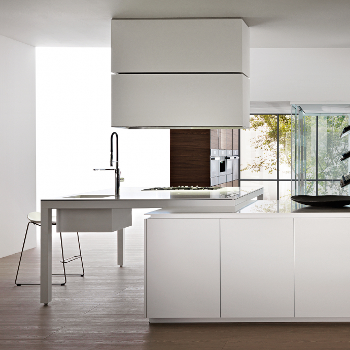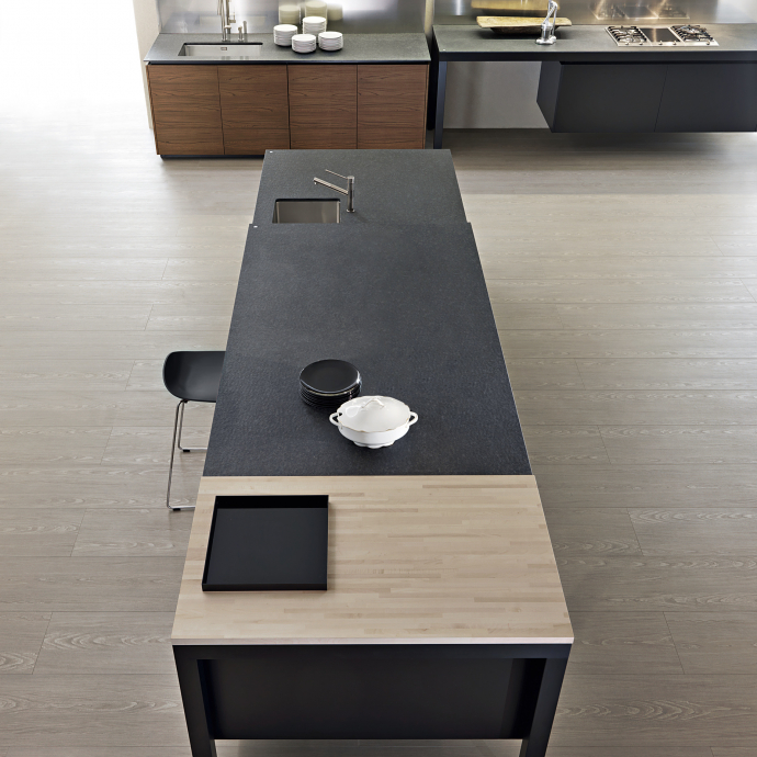Banco, created by Luca Meda in 1994, concentrates the main cooking and washing functions in the free-