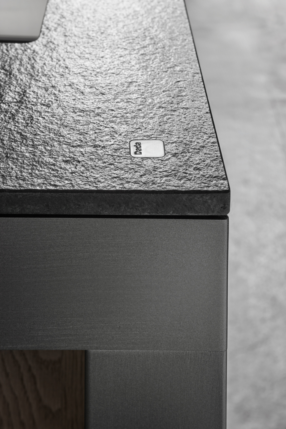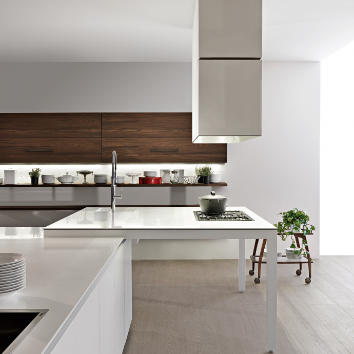 standing structure, patented by Dada. A solid extrusion of aluminium supports the slimline worktop which