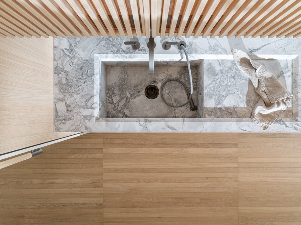 The concept behind the design was to have a kitchen, within a usable internal linear space of between 2.40 and 3 meters, where the scenographic element prevails and the kitchen reaches its highest expression, rather like the performance of an actor on stage.