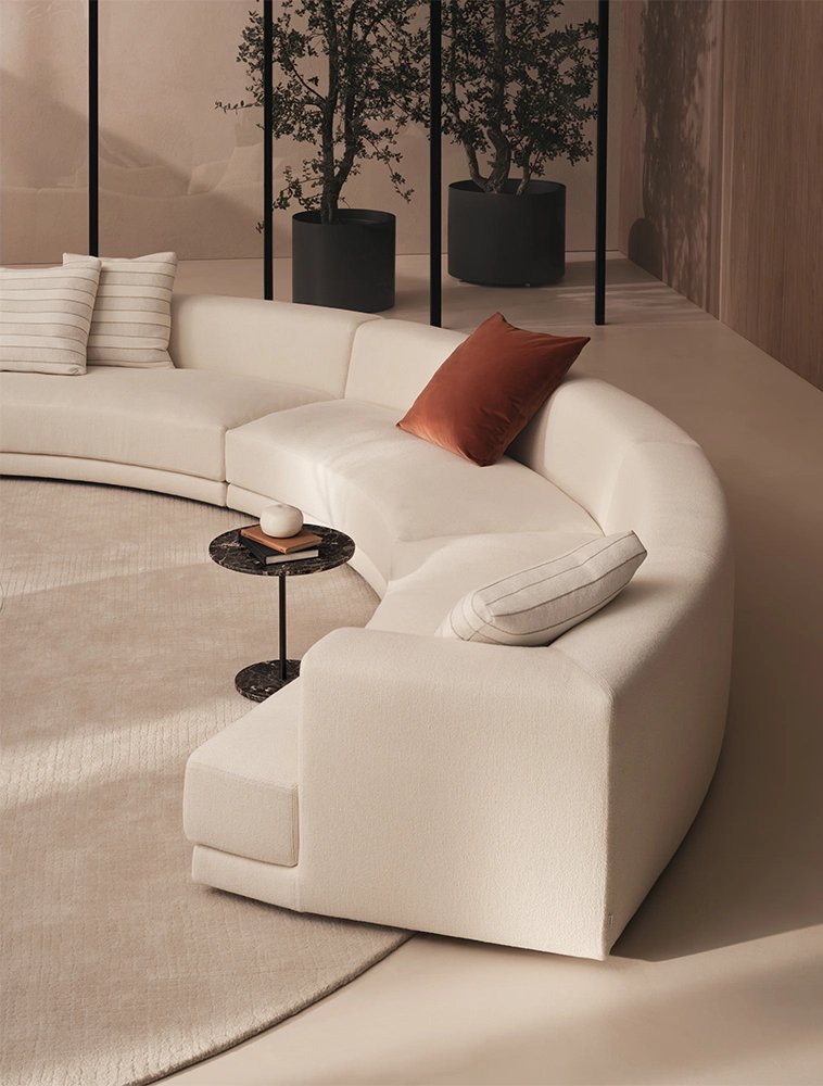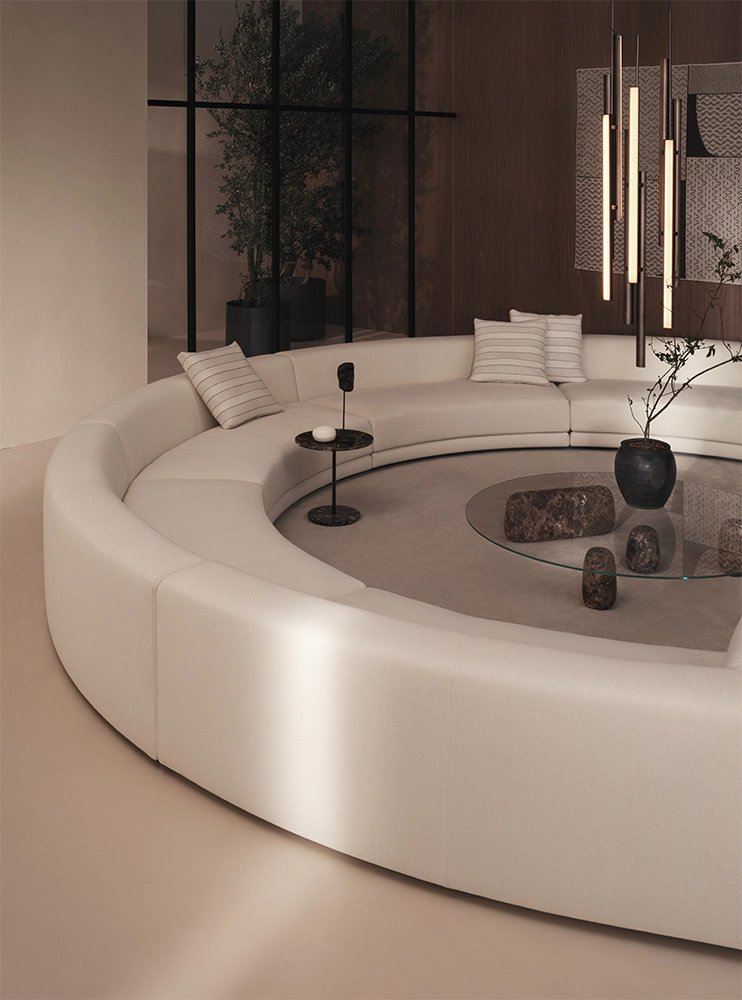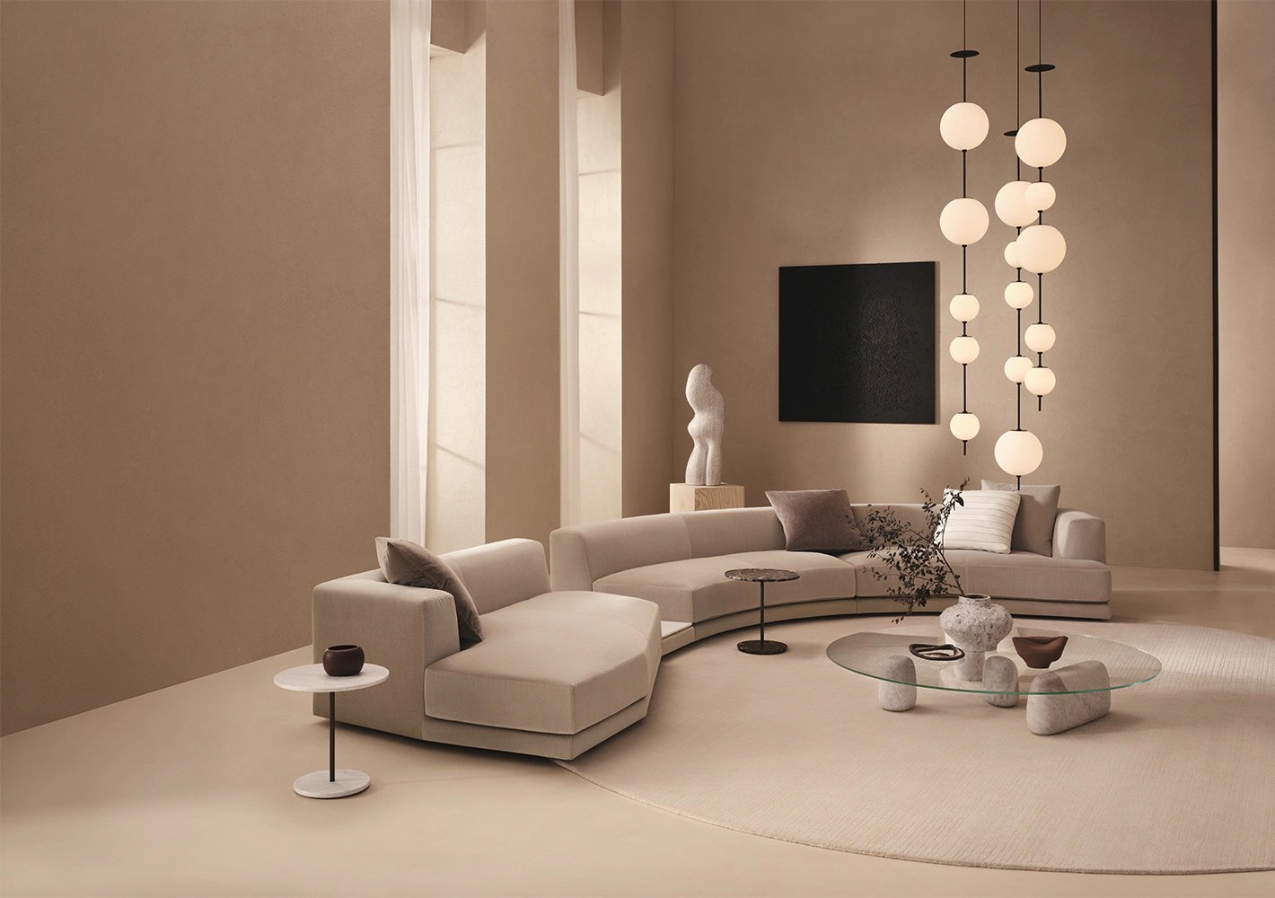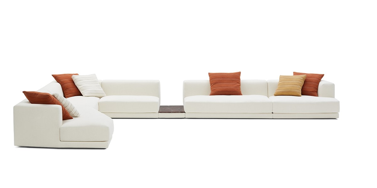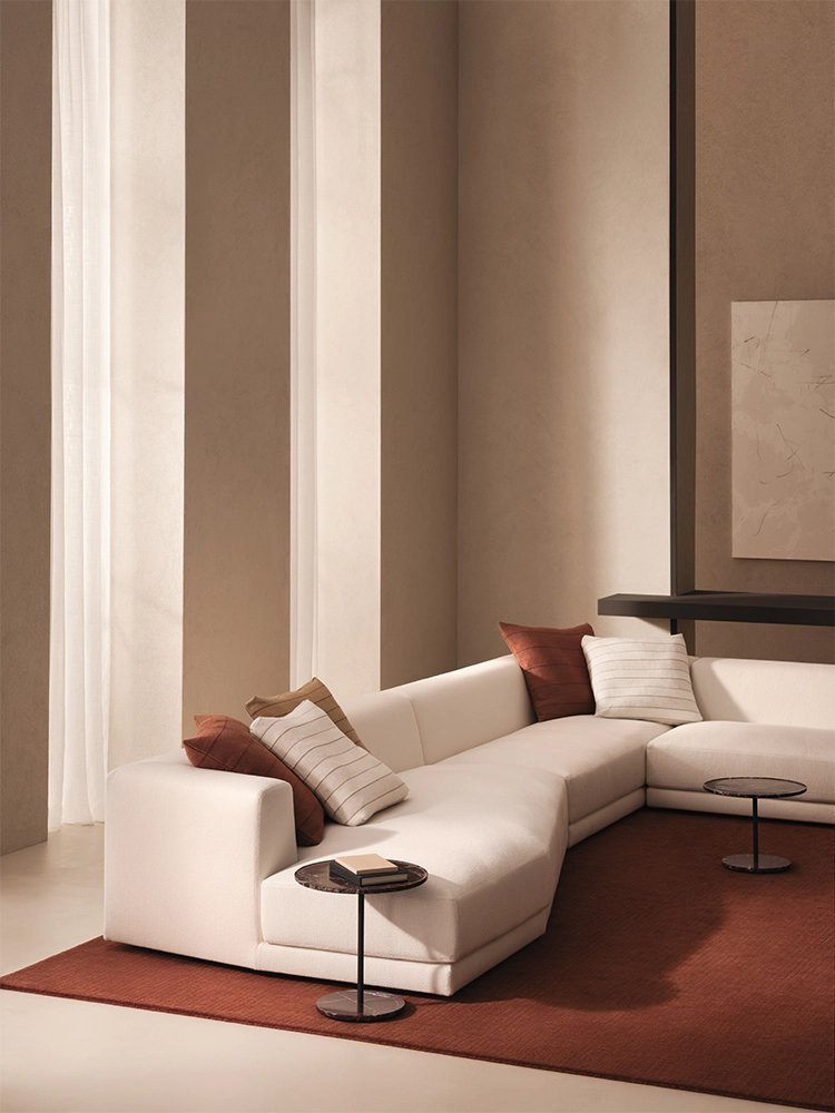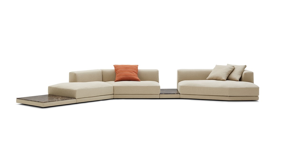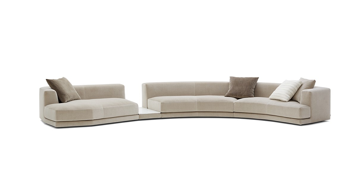 Harmony of shapes and perfect functionality of use. Alberese XL is the collection of modular sofas that multiplies the possibilities to be at the center of a personal and contemporary living space. A new integration of the Alberese family designed by Piero Lissoni in 2020, the XL version alternates seats with changes in depth, curved elements and cushions with a defined front. Providing space for welcoming inclined armrests and comfortable seats where one can relax, read, and be together.