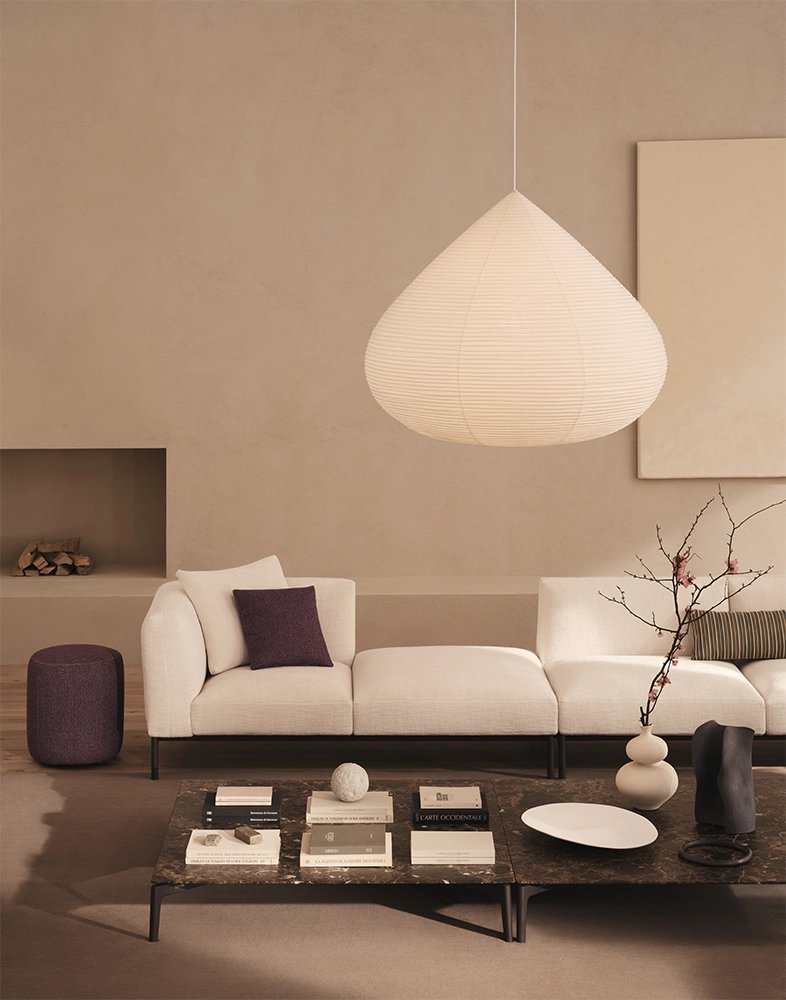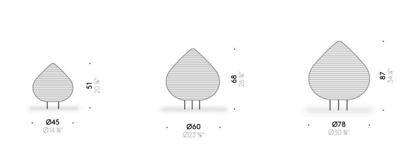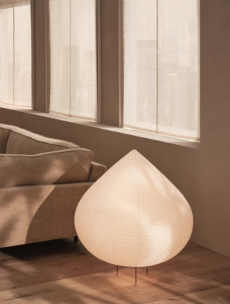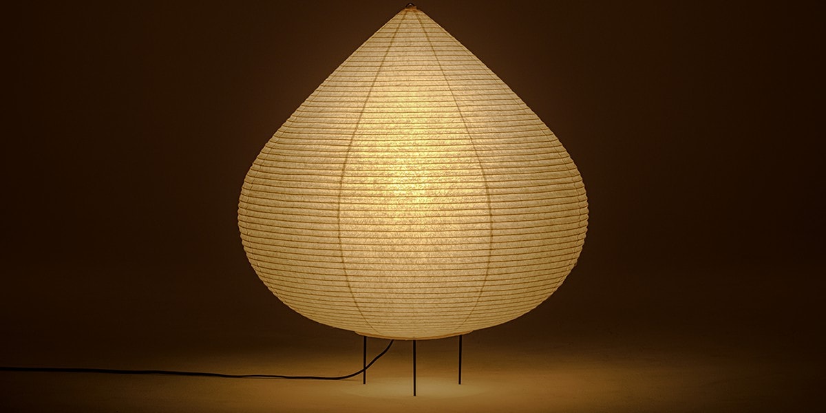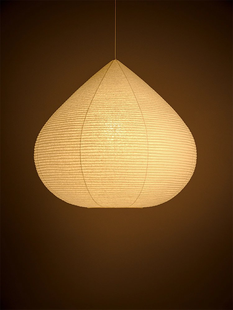 Drop paper lamp is made with the techniques of Suifu lantern, known for the production of durable and sturdy paper lanterns. For the lantern’s shade, we chose Echizen washi paper, a traditional paper with a history of about 1,500 years and characterized by its warm color and durability due to the long and thick Japanese mulberry fiber used as the raw material. It is generally used in large sheets that can be applied seamlessly to large fittings such as fusuma (sliding doors) and byobu (folding screens).