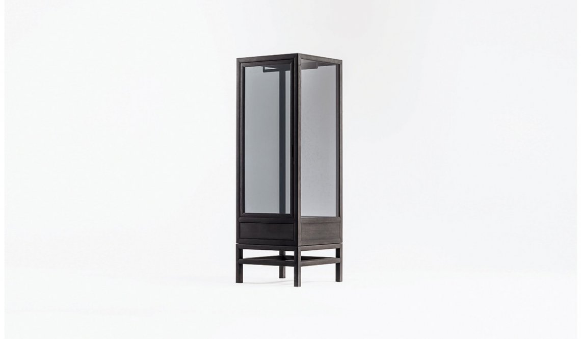 Sliding doors are an element that strongly characterizes traditional Japanese design. We find them in this contemporary double-door interpretation of the classic wardrobe, with drawers on the bottom for small objects and accessories. Also available in single version with hinged door, the wardrobe is made of solid bleached or charcoal gray oak wood.