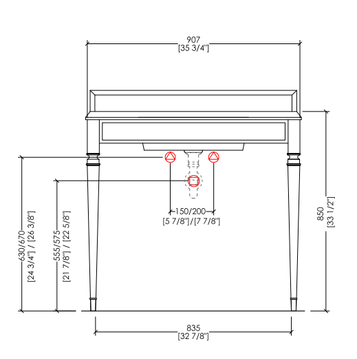 The timeless charm of the old marble consoles is reinterpreted for practicality in this elegant white ceramic version; it is equipped with aluminium pyramid-shaped legs inspired by the Art Deco style, available in chrome, light gold or polished nickel finishes.