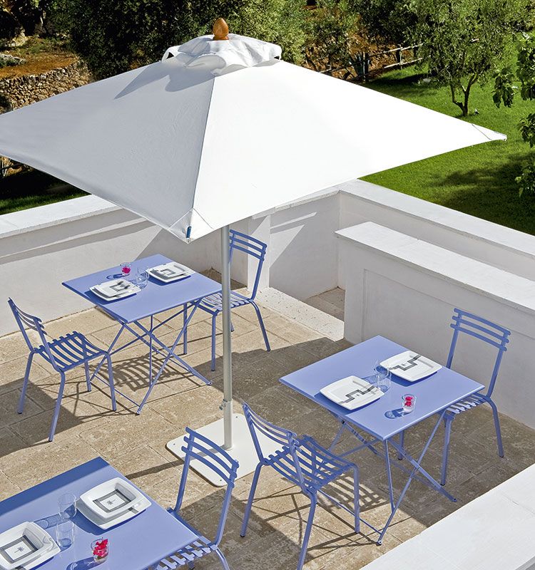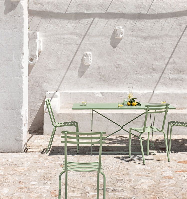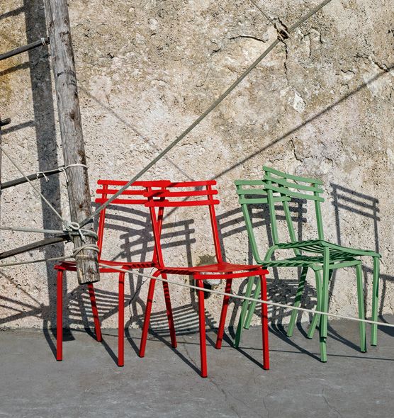 The Flower collection is a line of tables and chairs in which colored metal runs through the bright colors of nature.