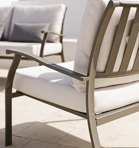 This furniture collection, inspired by classic design yet ready to meet all contemporary outdoor living needs, displays a timeless style with a complete and coordinated range, from seats to tables and accessory items.
