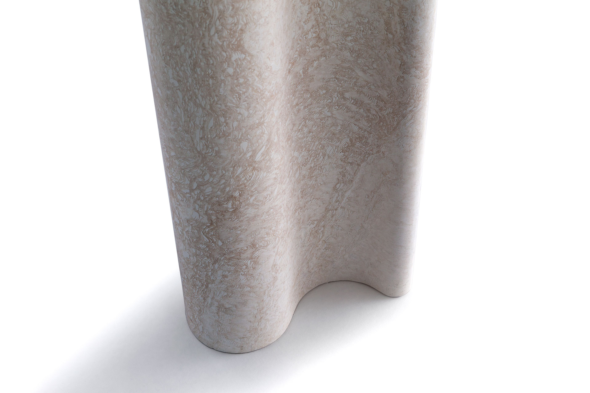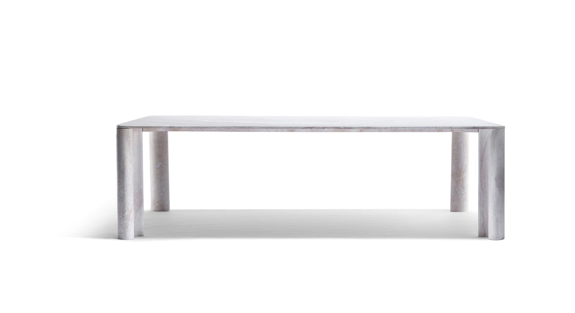 Michelangelo, the main table in the new Exteta collection, is a piece made entirely of marble with extraordinary elegance radiated by the material’s expressive power.