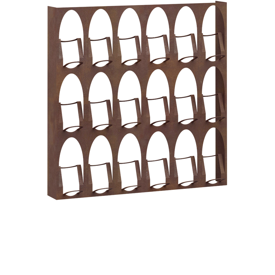 The modular bookcase is entirely made of laser-cut iron, in which cavities can be placed bottles of different sizes, ensuring proper conservation of the wine.