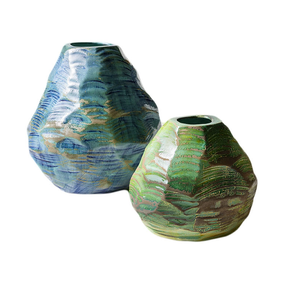 Le geometrie dei vasi in ceramica CARDO sono ispirate al bocciolo dell'omonimo fiore. La superficie spigolosa è ricoperta di smalto lucido carteggiato a mano per far riaffiorare il colore originale dell’argilla e creare interessanti contrasti tra le aree grezze opache e quelle lisce e lucide.
