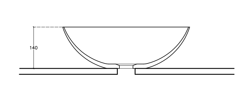 Mobile bagno porta lavabo con cassetto, top integrato e lavabo da appoggio, dimensioni da 140cm a 160cm. Piano integrato in Fenix con taglio a 45°. Lavabo in Cristalplant? Bio Active opaco modello Ciotola con copri piletta in Cristalplant? Bio Active, disponibile nelle versioni centrato, a destra e a sinistra del mobile. Basi del mobile con frontali e fianchi a 45°. I cassetti sono completamente estraibili e sono disponibili con maniglie opzionali a gola o premi apri.