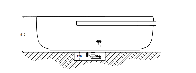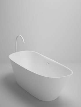 Vasca da bagno freestanding centrostanza in Cristalplant con dimensioni 174cm per 82cm. Porta salviette e bordo inferiore del basamento in metallo. Copri piletta in Cristalplant.