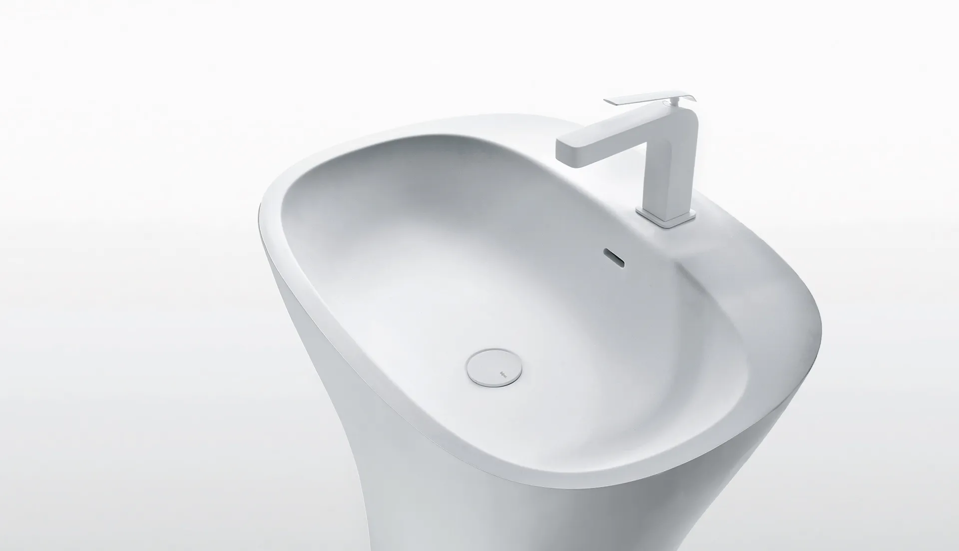 Mobile bagno porta lavabo con cassetto, top integrato e lavabo da appoggio, dimensioni da 140cm a 160cm. Piano integrato in Fenix con taglio a 45°. Lavabo in Cristalplant? Bio Active opaco modello Ciotola con copri piletta in Cristalplant? Bio Active, disponibile nelle versioni centrato, a destra e a sinistra del mobile. Basi del mobile con frontali e fianchi a 45°. I cassetti sono completamente estraibili e sono disponibili con maniglie opzionali a gola o premi apri.