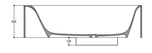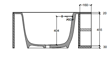 Vasca da bagno freestanding centrostanza in Cristalplant con dimensioni 174cm per 82cm. Porta salviette e bordo inferiore del basamento in metallo. Copri piletta in Cristalplant.