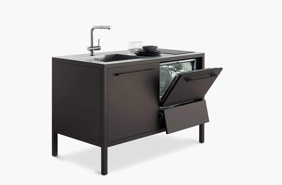 Le cucine Frame sono proposte a 2 o 3 moduli, con top in acciaio Barazza o in Fenix NTM. L’acciaio – in finitura Vintage o satinata da 4 mm – è abbinabile con tutte le finiture Fantin, mentre i top in Fenix NTM sono proposti con telai nelle finiture Ultra-matt perché esattamente corrispondenti per colore, opacità e morbidezza al tatto. è così possibile ottenere cucine monocromatiche dalle solide strutture in metallo Fantin e con top resistenti e ripristinabili.