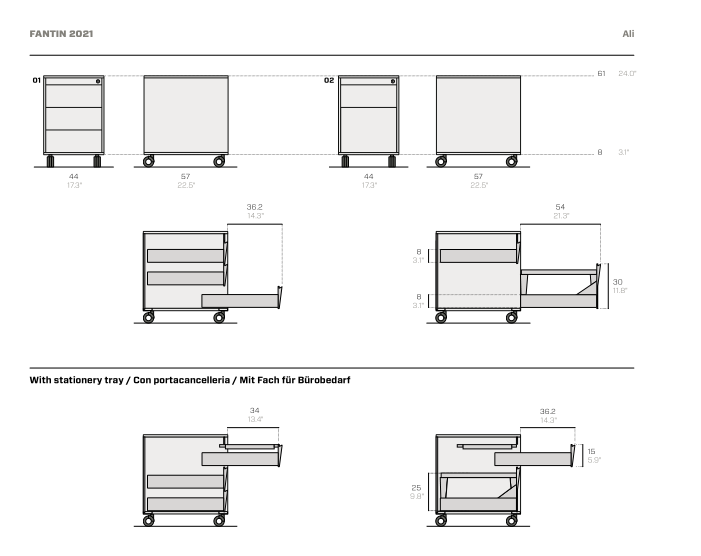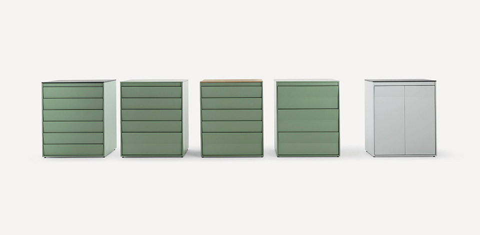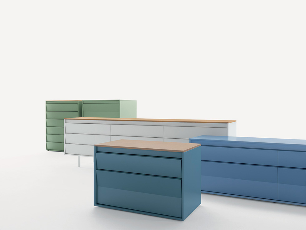 Ali Collection è composta da cassettiere e credenze che si caratterizzano dalla particolare presa maniglia che, da semplice elemento funzionale, si evolve ad elemento estetico. Il susseguirsi dei cassetti o delle ante, cadenzato da sfumature di luci ed ombre, è il punto di arrivo del pensiero progettuale. Le tante varianti dimensionali rendono Ali Collection adatta in tutti gli ambienti, sia a casa che in ufficio.