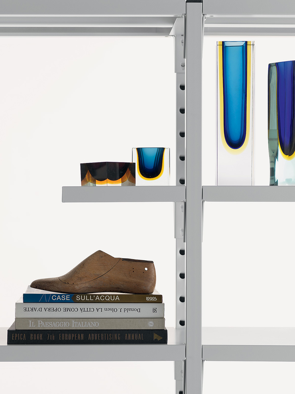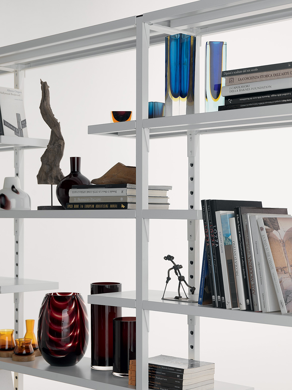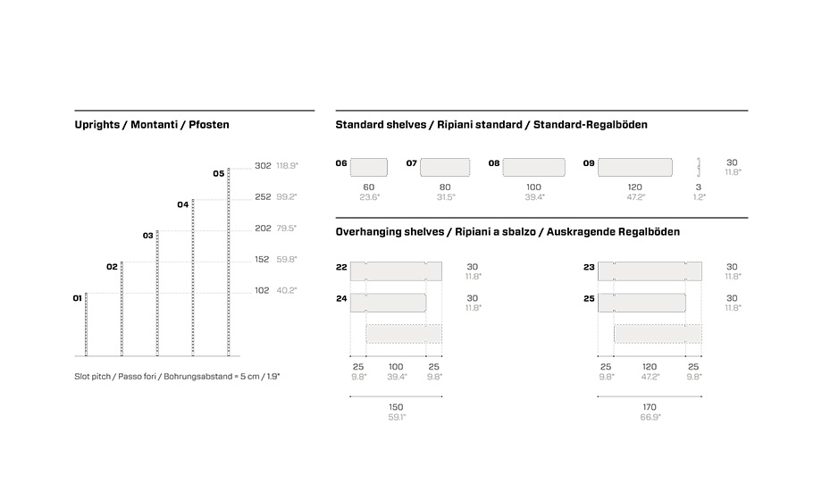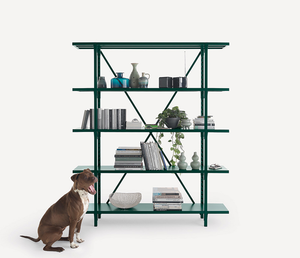 Libreria componibile interamente in metallo. Lo storico sistema di ripiani a ganci Fantin si arricchisce con l’inserimento dei ripiani a sbalzo, che permettono di arredare ogni ambiente al meglio e con una versatilità senza limiti.
