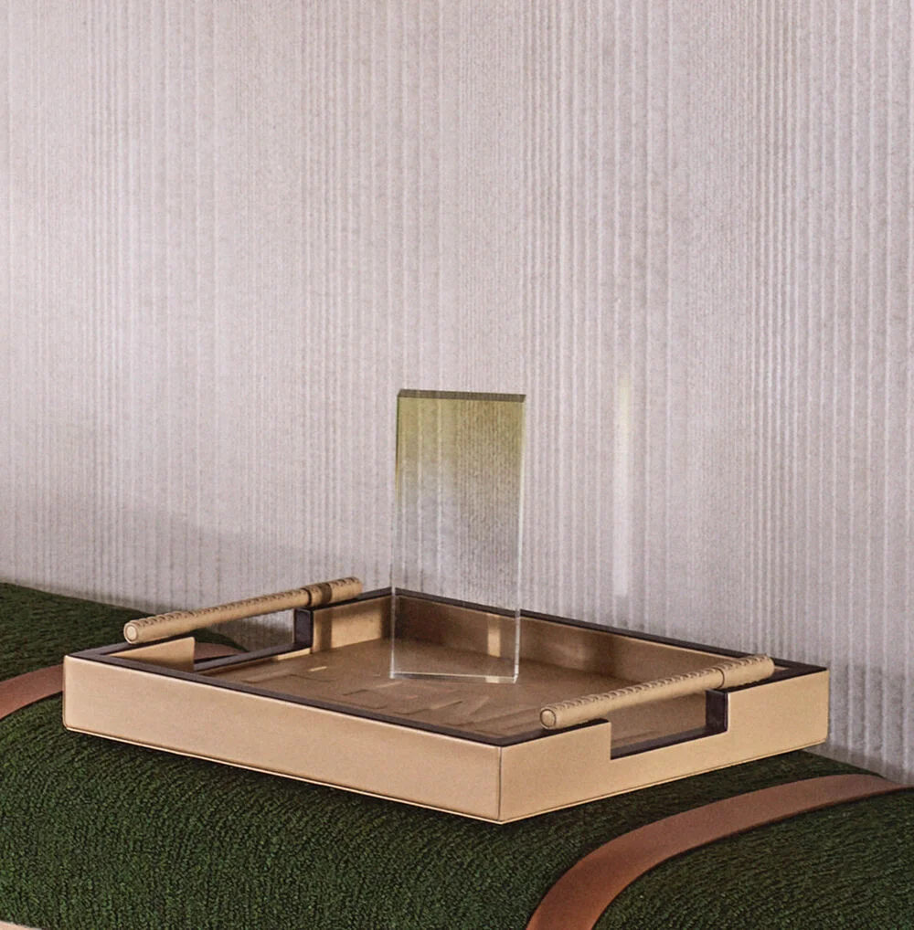 The Fendi Roma series of trays transforms a classic rectangular design into elegant accessories in exquisite materials. The tactile contrast of leather and velvet creates a striking chromatic interplay that showcases the versatile nature of each piece, while the embossed Fendi logo in the centre of the tray injects a touch of distinctive Italian flair into everyday living.