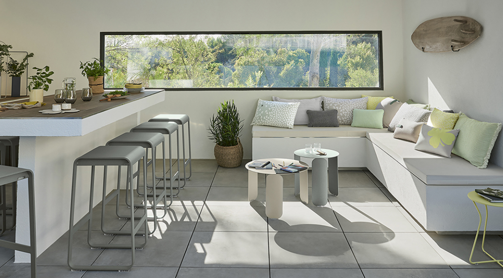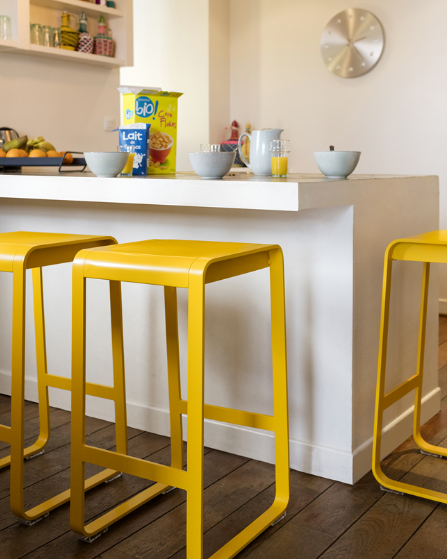 Le tabouret de bar Bellevie s'installe au bar du pool house ou dans la cuisine d'été.Sa composition en aluminium lui confère une grande légèreté (à peine 7 kg) ce qui permet de le déplacer facilement de part et d'autre de la terrasse ou de la maison... avant de le