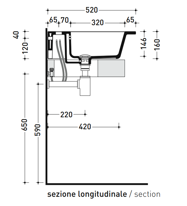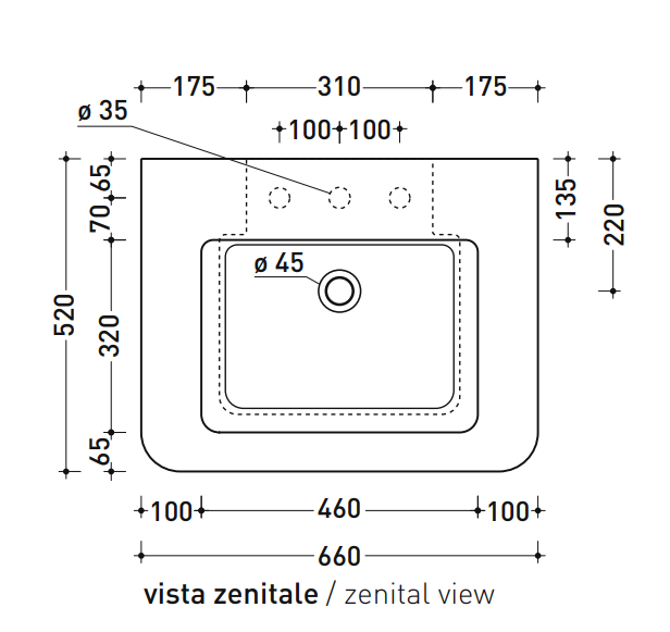 Countertop/wall hung basin 66 cm