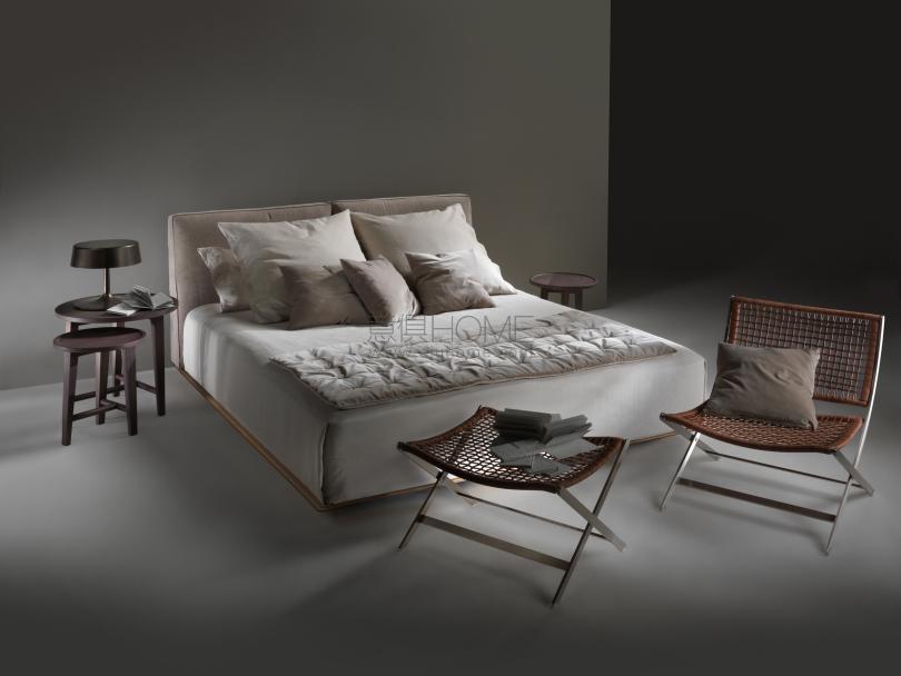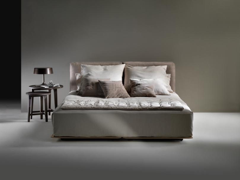 Grandemare床與同名沙發(fā)一樣,秉承低調(diào)的設(shè)計理念,但采用了豐富的設(shè)計方案,包括隱藏式的方案,使之呈現(xiàn)出卓越的品質(zhì)。 寬大的床頭板呈幾何造型,線條柔和,放置在風(fēng)格嚴(yán)謹(jǐn)?shù)拇舶迳希舶鍨槟局?,表面覆蓋皮革。 床頭板的面料可采用織物或真皮。 覆蓋面料均可拆卸,并配有同色或撞色對比的羅緞滾邊。 金屬邊框經(jīng)過環(huán)氧粉末烤箱上釉,相對于皮革平板位置更靠后,令Grandemare床呈現(xiàn)出懸浮的觀感。