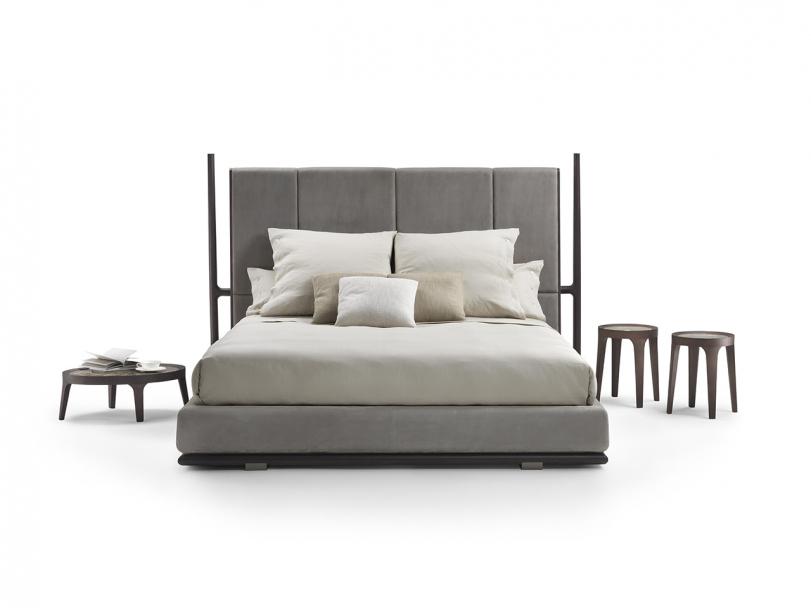 Icaro床屬于同名系列,該系列包括沙發(fā)、扶手椅、茶幾、床和多款其他配件。整個系列最具特色的標(biāo)志,是精致的實木結(jié)構(gòu),遵循意大利木工傳統(tǒng)進(jìn)行加工。 Icaro床呈現(xiàn)出精致的裸露結(jié)構(gòu),采用圓潤的歐洲白蠟?zāi)緦嵞局圃?,可漆成不同的?yōu)雅顏色,上面放置著填充床墊。 填充床頭板是由填充面板構(gòu)成的,勾勒出當(dāng)代幾何風(fēng)味的方格。 Icaro床可搭配同款床頭柜,具有同樣的設(shè)計和表面處理,并配一面優(yōu)雅的鏡子。