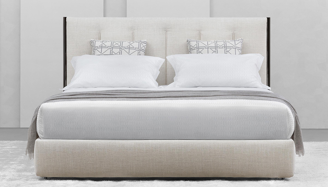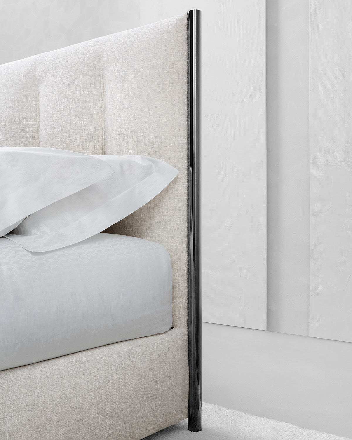 舒適柔軟的棉織床頭板搭配現(xiàn)代時髦的金屬框架,新穎別致。