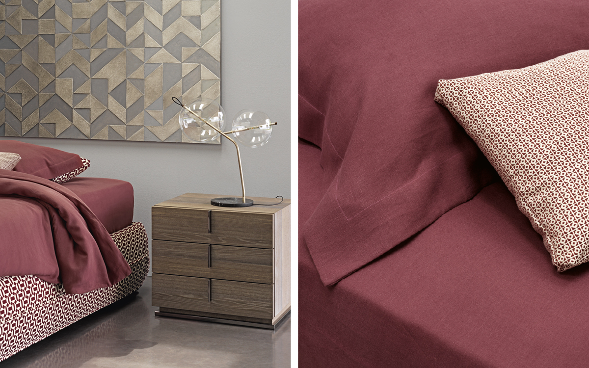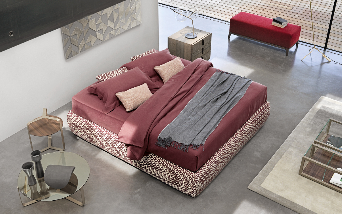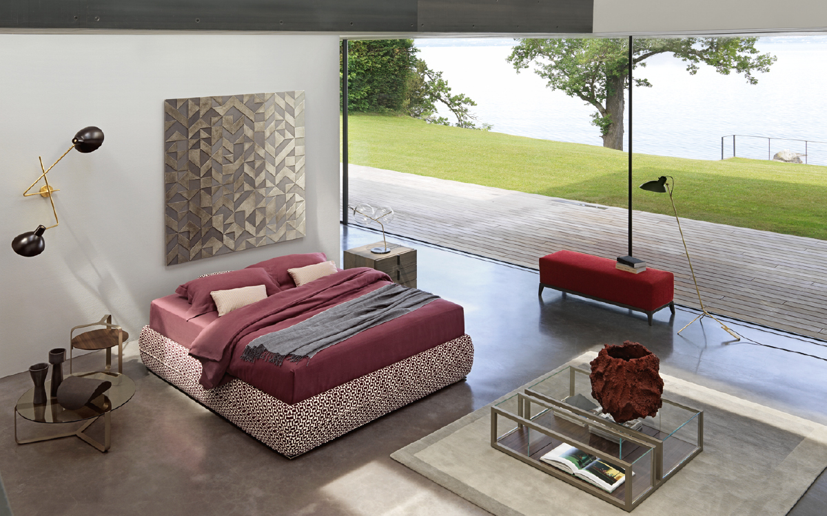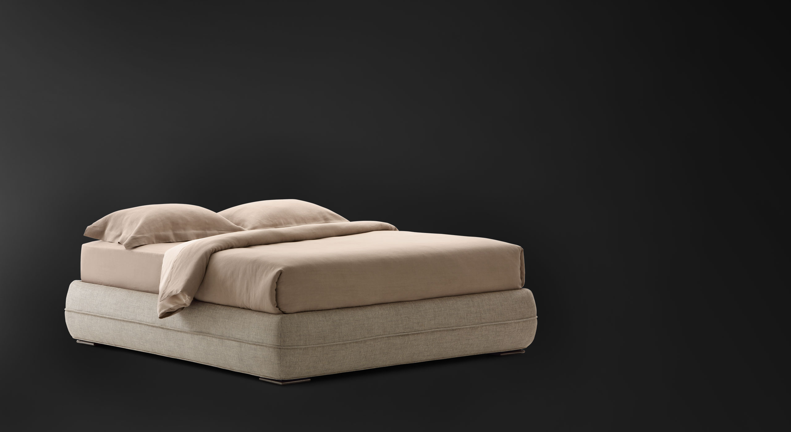 精致的床,源自東方靈感,適合經(jīng)典和現(xiàn)代環(huán)境。該基座的特點(diǎn)是沿其整個(gè)周邊有一個(gè)水平的警戒縫,打破了它相當(dāng)高的感覺(jué):離地面39厘米,比傳統(tǒng)的床或sommier床高兩倍。在床頭板上再現(xiàn)相同的裝飾圖案,高度為2/3。Mandarine也提供sommier版本,沒(méi)有床頭板,這有助于在墻上突出床幃,窗簾,裝飾畫或護(hù)壁板的美麗豐富。在這兩個(gè)版本中,它都有一個(gè)存儲(chǔ)底座,一個(gè)帶有可調(diào)節(jié)板條頂部的固定底座或帶有電動(dòng)機(jī)芯和光滑的黑色鎳腳。