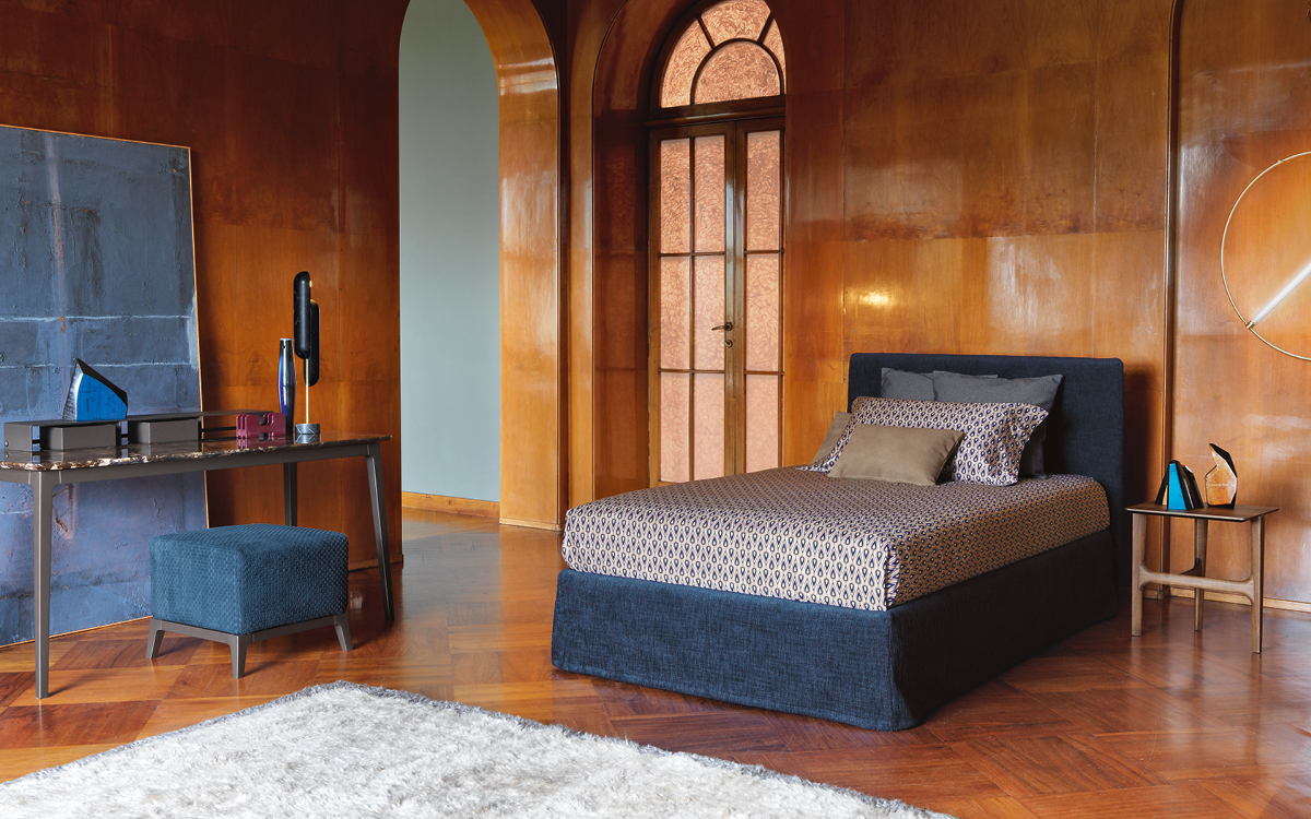 它的優(yōu)點在于柔軟的床頭板以及憑借尼龍搭扣的設(shè)計可拆卸不同面料。
