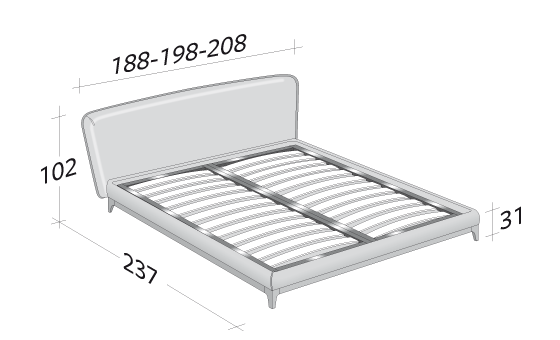 Ultrachic的床頭板和底座采用專業(yè)編織皮革制成,同樣精致的版本帶有可拆卸的無蓋皮革薄皮層,織物或人造革。 休息面由可調(diào)節(jié)活動(dòng)板條和電動(dòng)升降調(diào)節(jié)。鋼結(jié)構(gòu)和四個(gè)鋁制腳部涂有拋光表面,賦予床架極大特色。