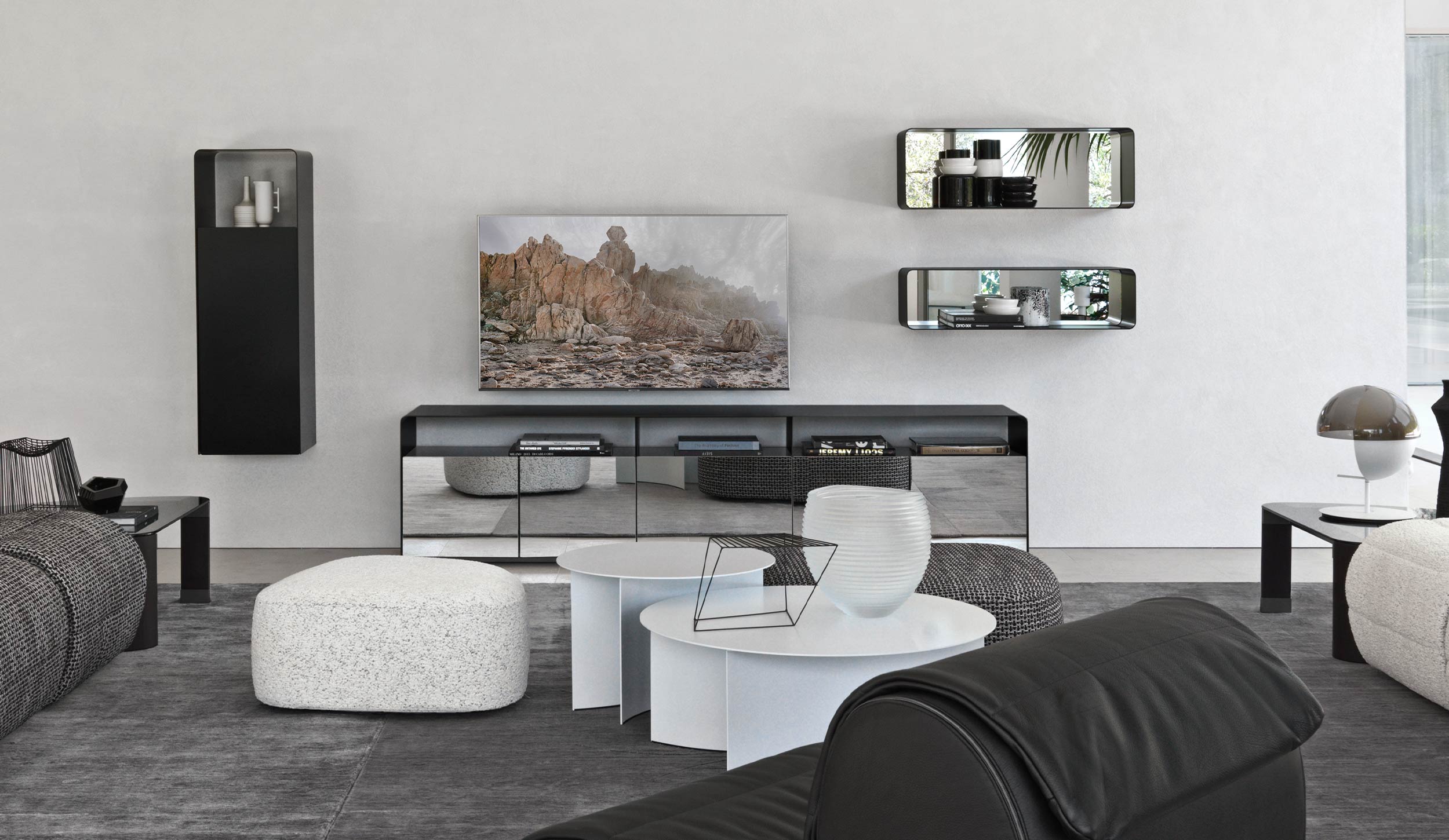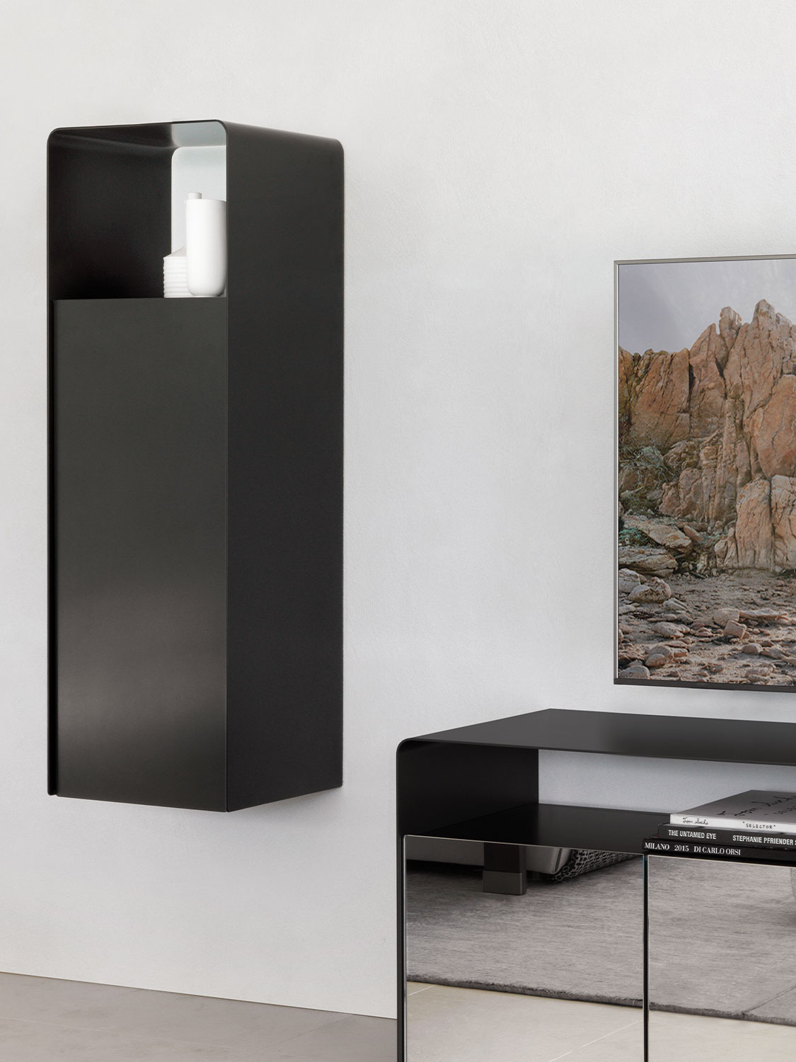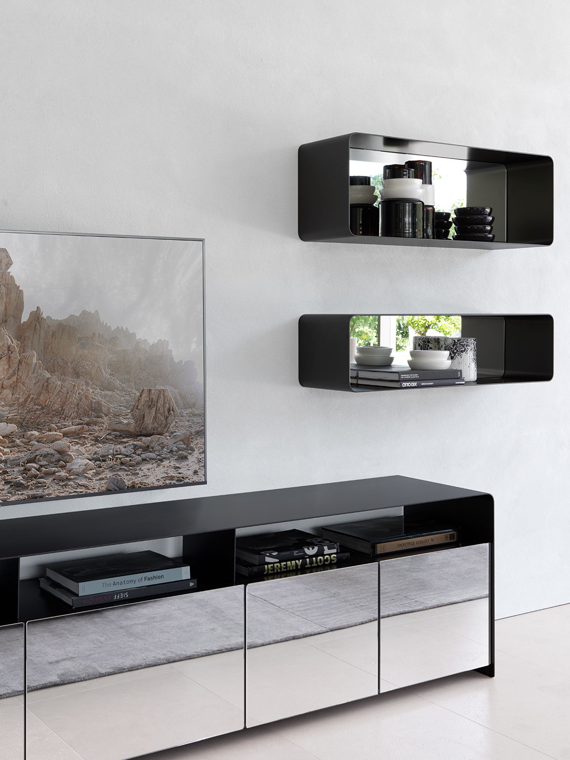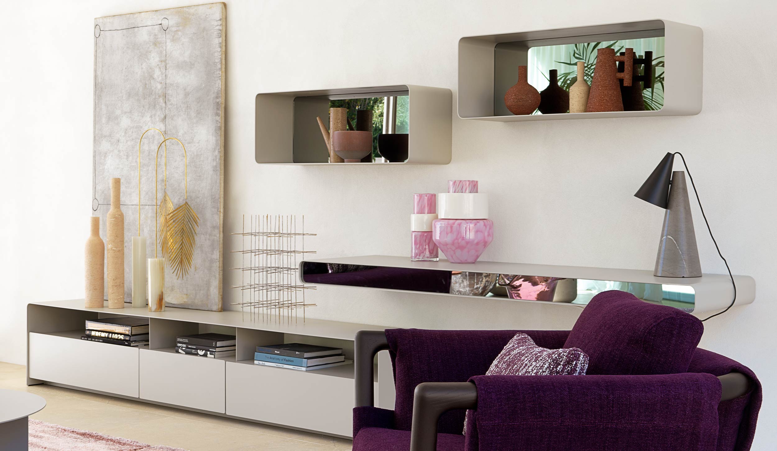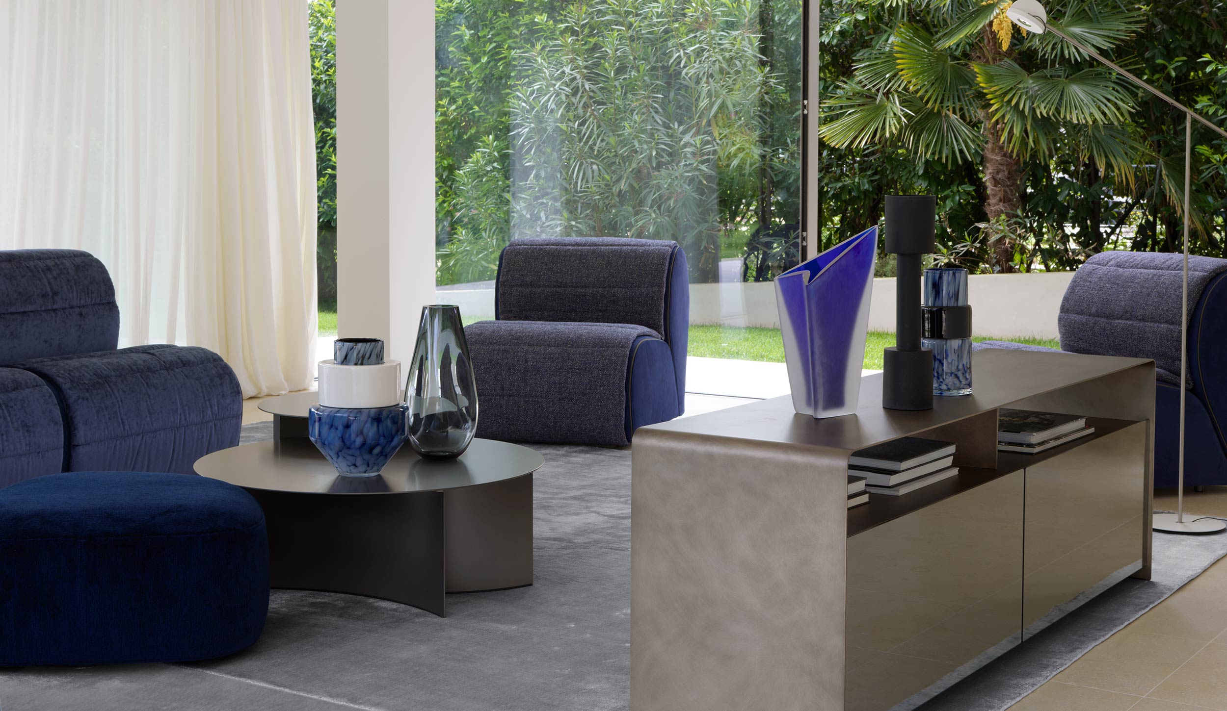 The simplicity of a curved metal sheet, the formal cleanliness: these are the guidelines that helped me design these containers. A system that, thanks to its simplicity and linearity, is eclectic, polyvalent and ideal for any ambience.