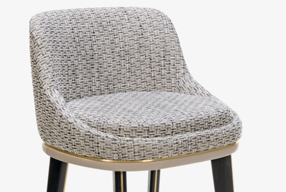 There’s no perching required with the MISOOL bar stool thanks to a cushioned seat and low-level backrest, all upholstered in a tactile fabric that contrasts with a section of smooth leather.