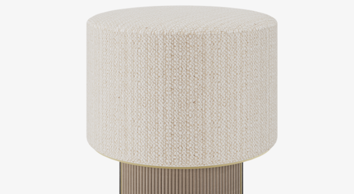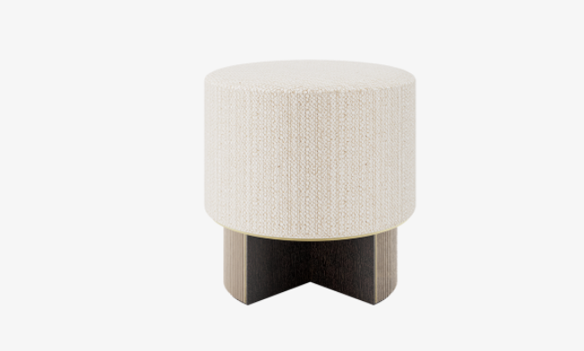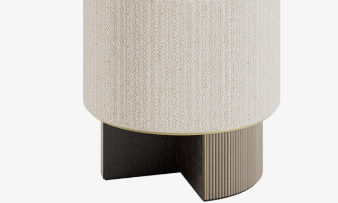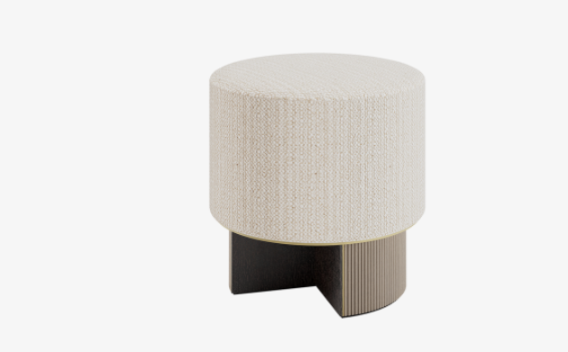 Named after the beautiful Tuscan city, the LUCCA stool contrasts a softly upholstered circular seat with solid base. The latter forms two-thirds of a circle and uses fluted veneer and dark wood veneer to artfully emphasise the sense of a void.