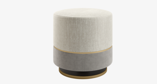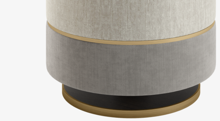 The pared-back PARMA stool elevates its understated silhouette by combining contrasting fabrics separated by a band of brushed brass.
