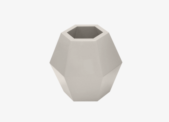 The hexagon-shaped MOSSY vase is seamlessly crafted from glossy lacquered wood and introduces a geometric vibe to the organic nature of flowers.