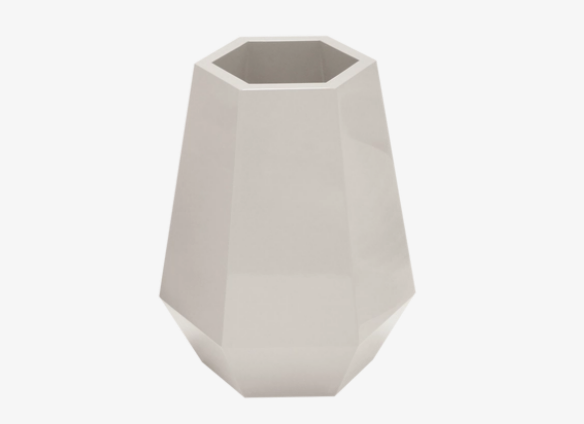The hexagon-shaped MOSSY vase is seamlessly crafted from glossy lacquered wood and introduces a geometric vibe to the organic nature of flowers.