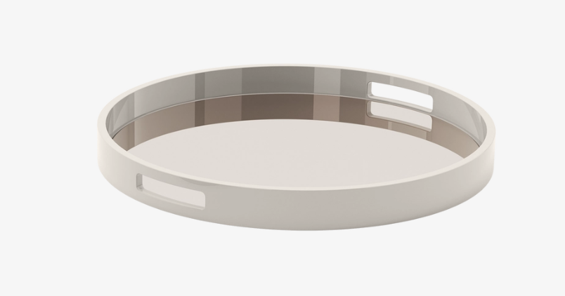 A classic tray with cut-out handles, the VISEU I is formed of lacquered wood inlaid with bronze mirror, a delectable pairing of form with function.