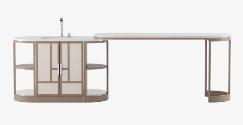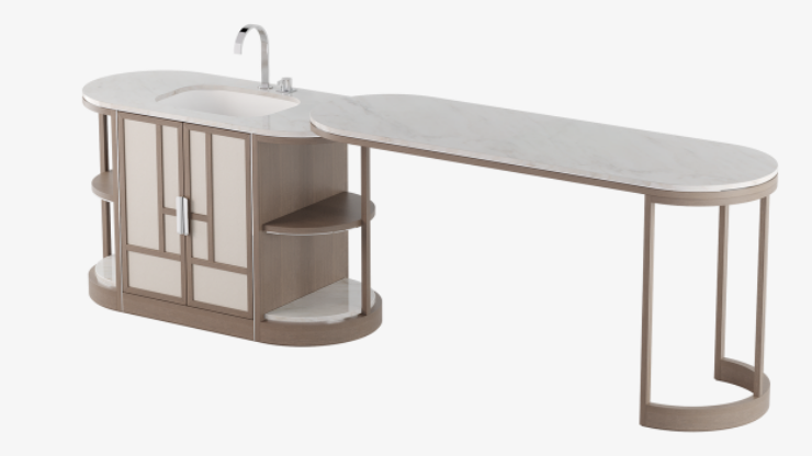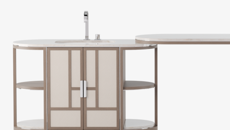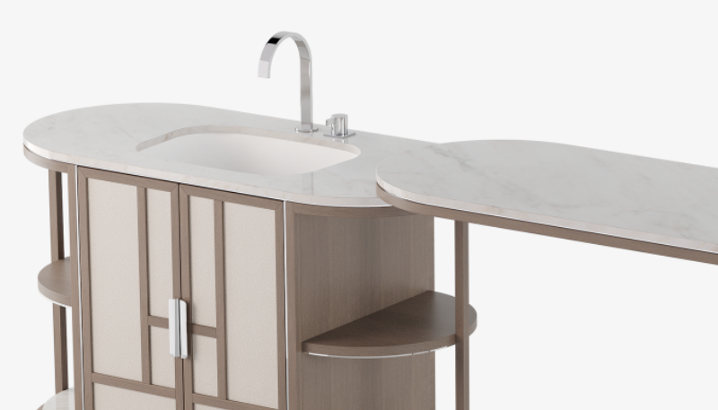 Designed for those who like to make a ritual out of getting ready, the comprehensive KYIV vanity unit comes with an optional dressing counter crafted from matching stone, wood and veneer.