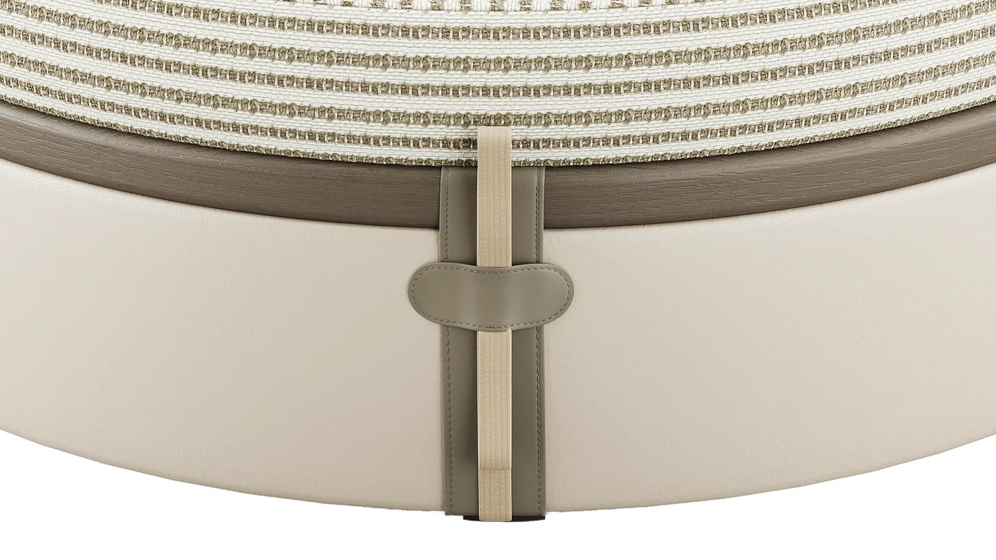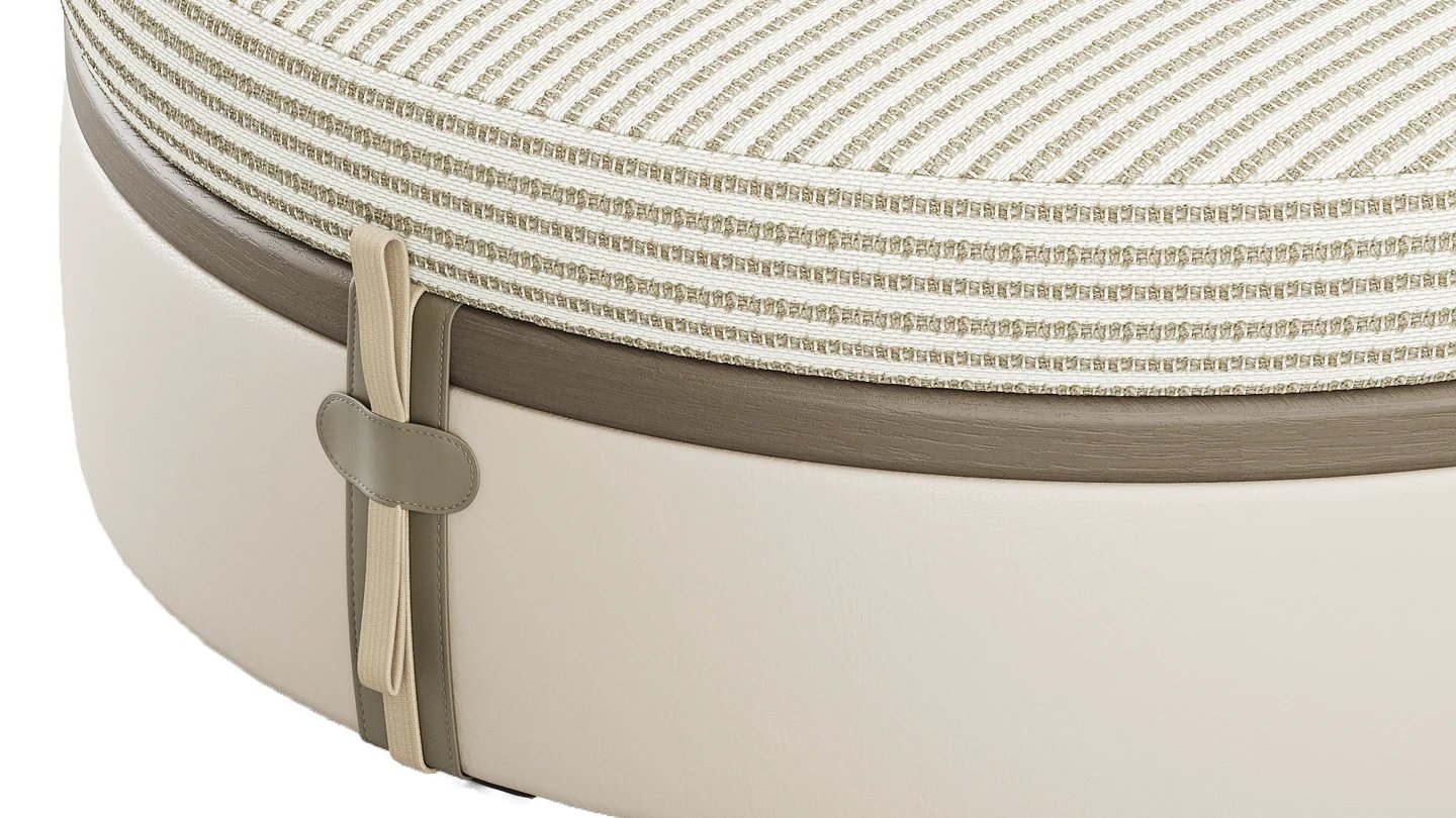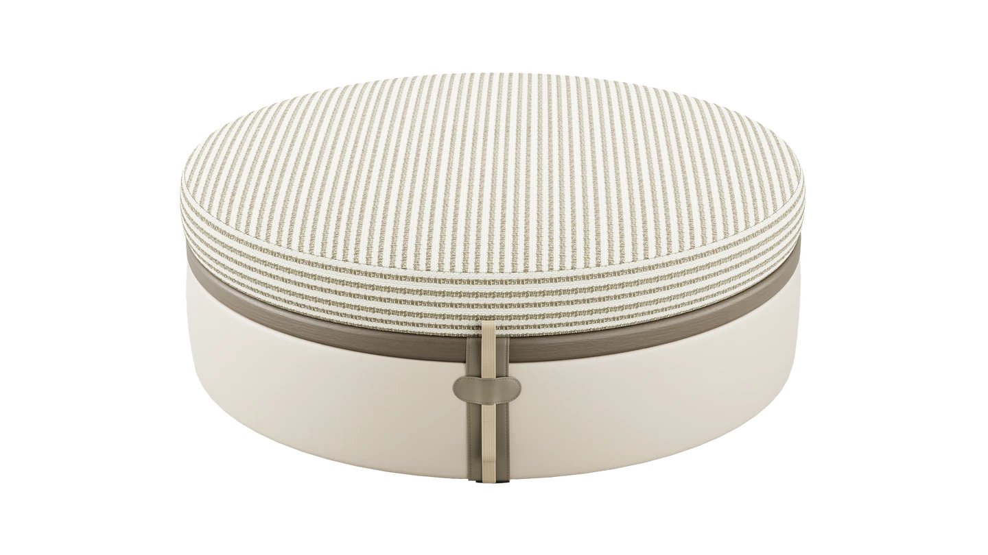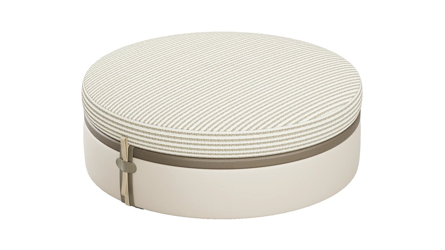 Provide extra seating (or put your feet up) with our MARBELLA Bench. The soft, circular shape is sophisticated and the wood and leather composition partners with the rest of the SAINT-TROPEZ collection.