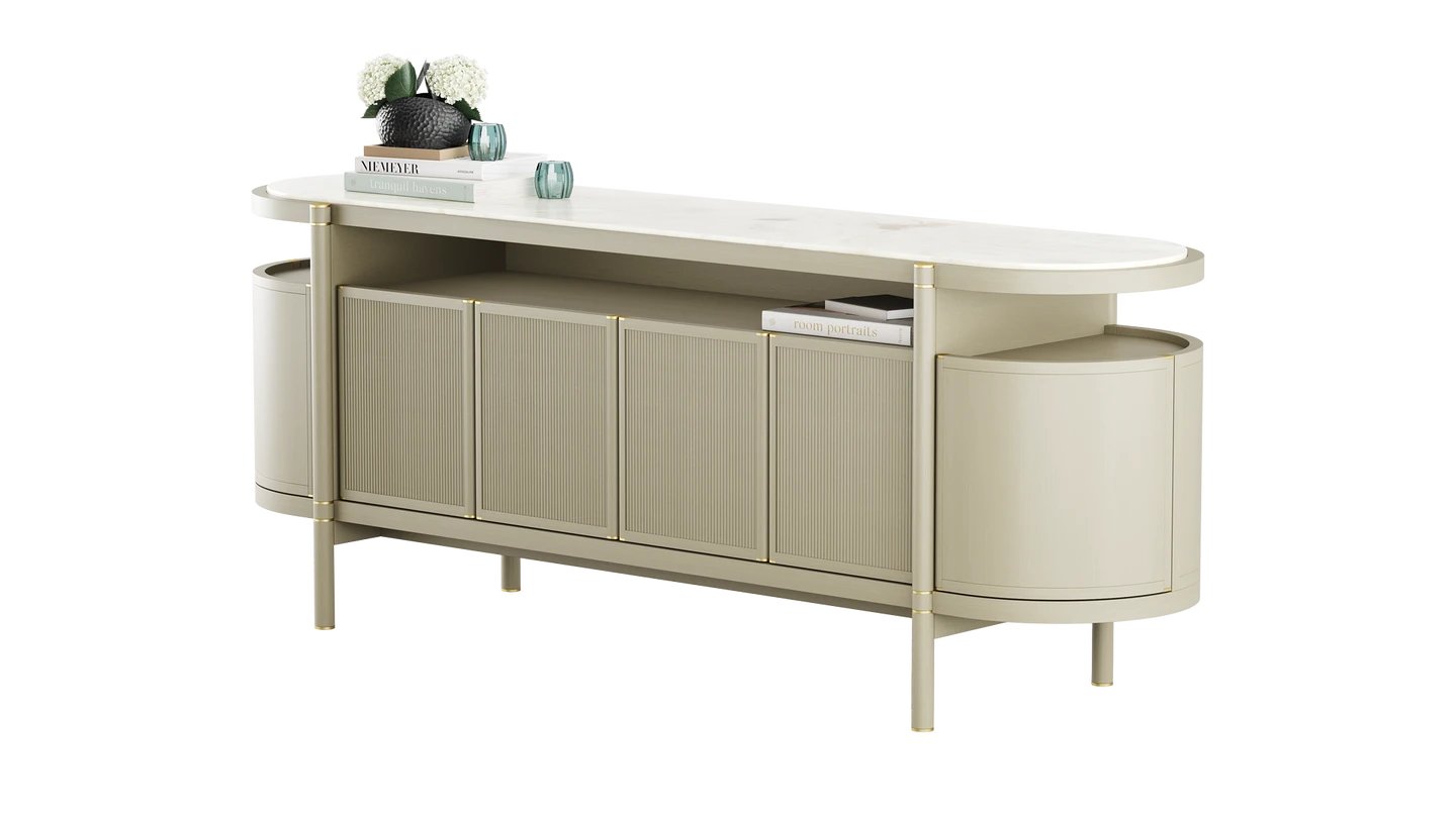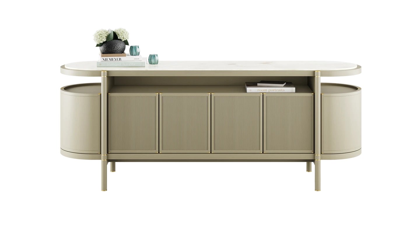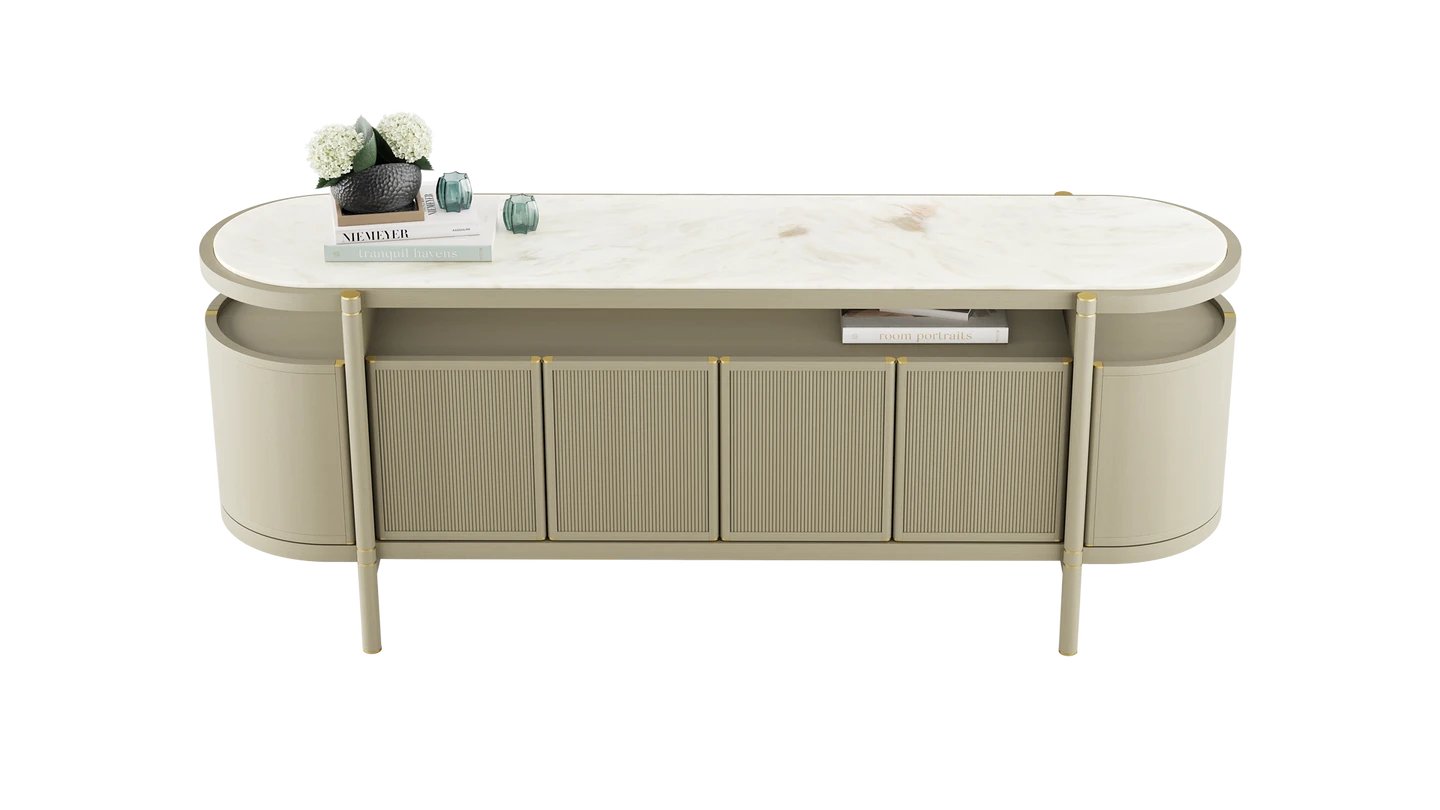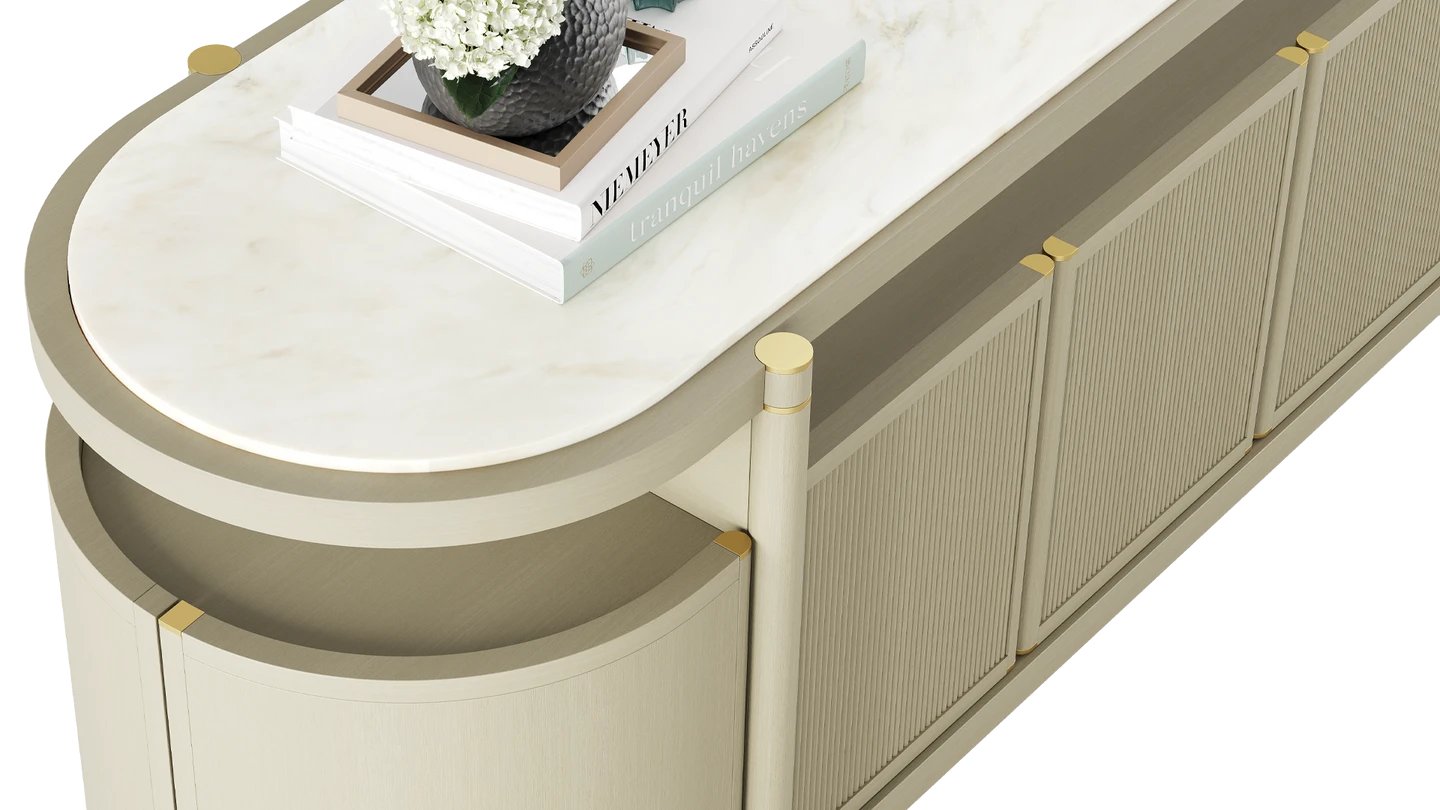 Combining wood, stone and brushed brass, the SALERNO Sideboard is graceful yet eye-catching. The elevated counter top adds a modern touch while the simple shape keeps things clean.