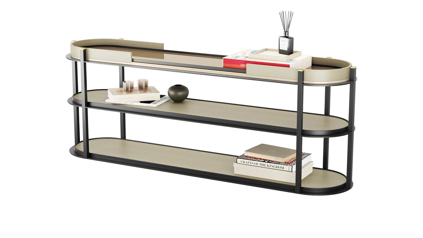 "Taking inspiration from the rocky desert town, our SEDONA Console commands space with its iron and wood base. Bronze mirror and brushed brass give it a subtle glow. "
