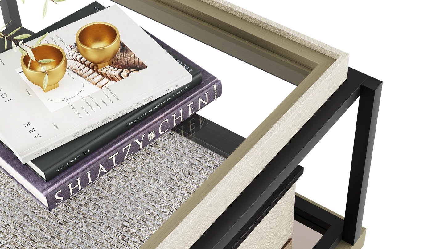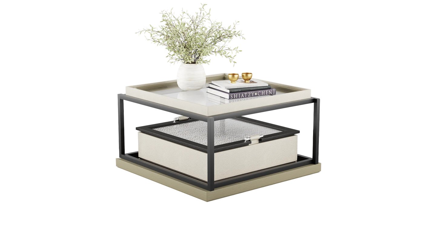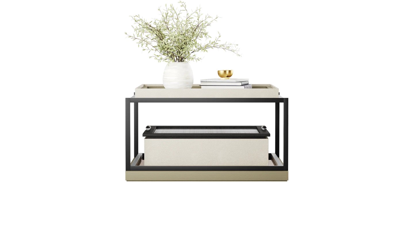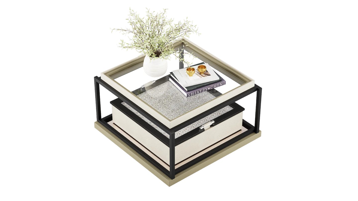 A true icon, the SYRACUSE Coffee Table combines several premium materials. The structure is crafted from wood and iron, whilst the top and base are from contrasting glass and bronze mirror. Suede and leather inlays add a sophisticated finish.