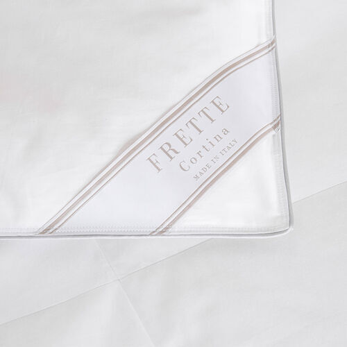 Our Cortina Down Pillows are filled with 85% Polish White Goose Down and covered in a white 380 thread count 100% cotton sateen. Finished with a double stitch seam and decorative piping. 85% goose down, 15% feathers, 100% cotton. Made in Italy.