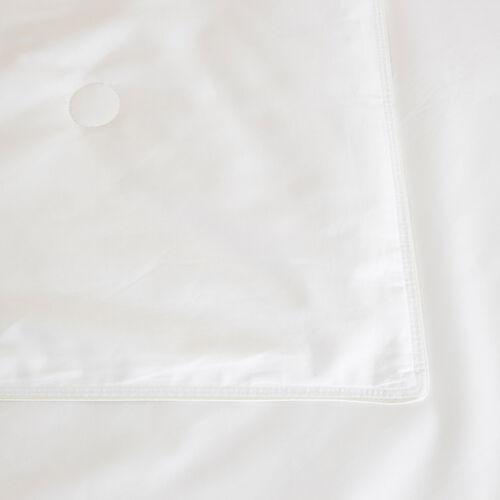 The filling of our Villa silk duvets is composed of enhanced pure Mulberry long fiber silk, encased in 300 thread count 100% cotton sateen. The particular length of the fibers allows stretching from edge to edge without any need for box stitching to keep the fibers in place. Naturally long Mulberry silk fibers offer the best insulation and heat retention properties thanks to their closed hollow structure, supreme moisture management and breathability factor. 100% silk, 100% cotton. Made in Italy.